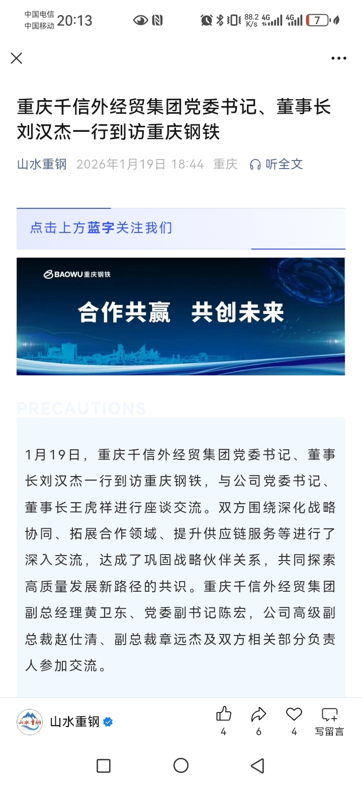 $重庆钢铁(SH601005)$ 重磅利好!地央一起合作共赢!