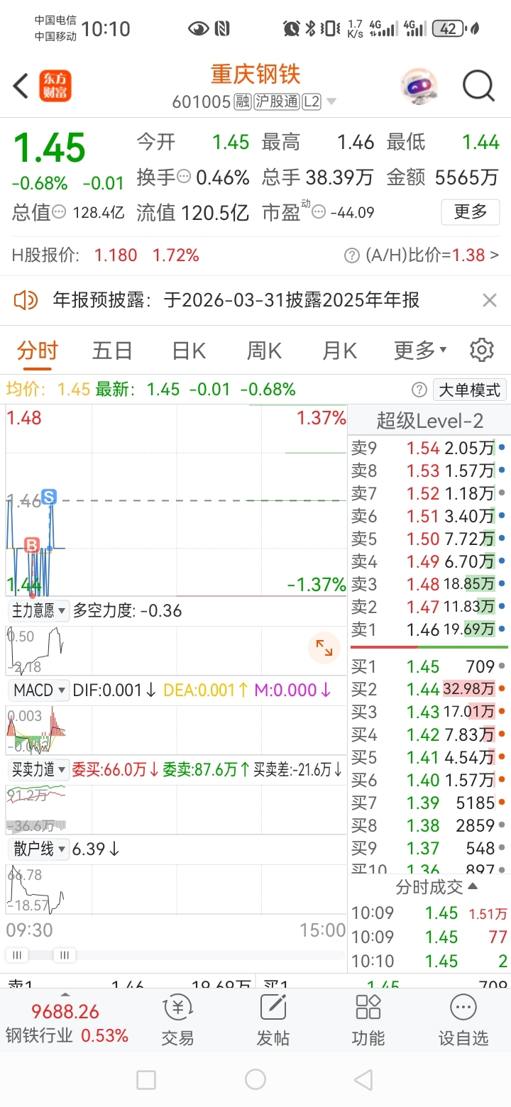 $重庆钢铁(SH601005)$ 感谢庄家。