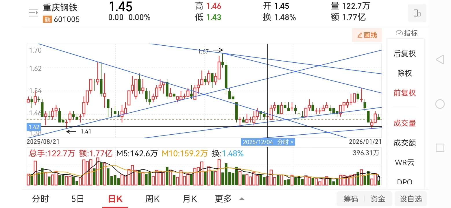 $重庆钢铁(SH601005)$ 说了昨天是破位后的反抽,回踩1.41不破才可以买入。