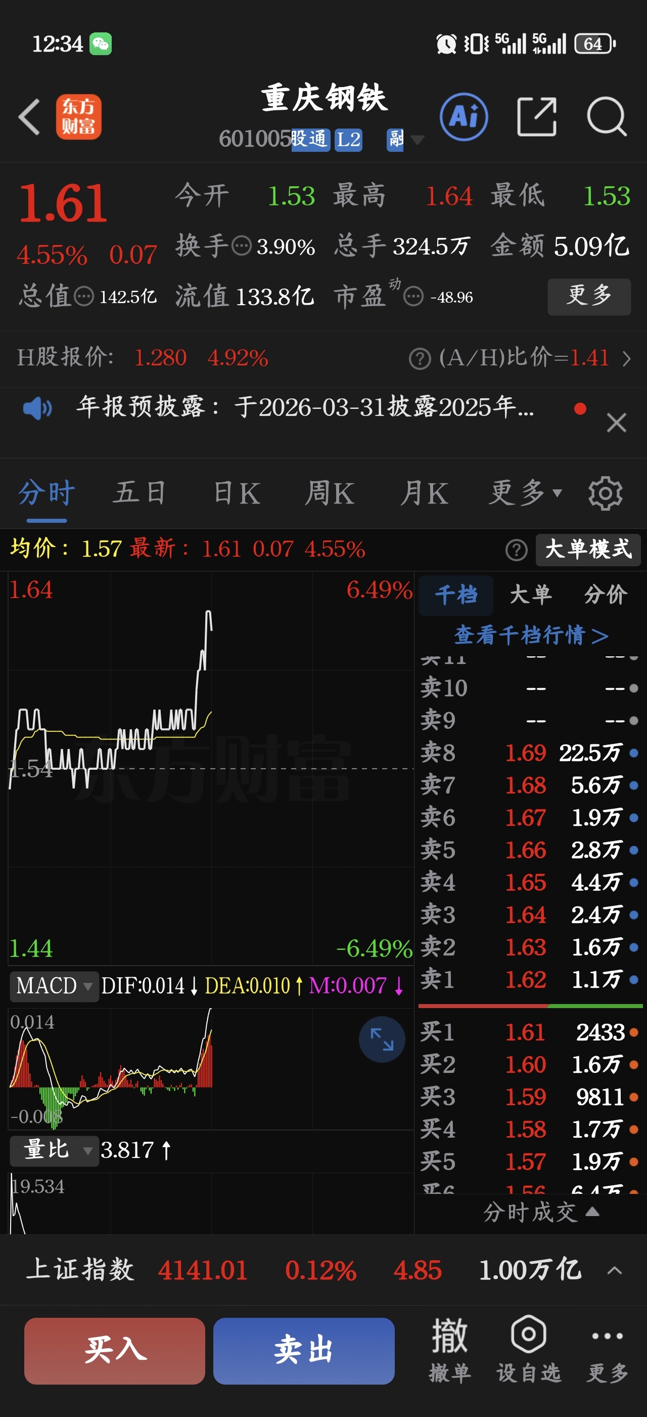 $重庆钢铁(SH601005)$ 赶快扫货涨停,雷神科技跌惨了,靠你回口血。