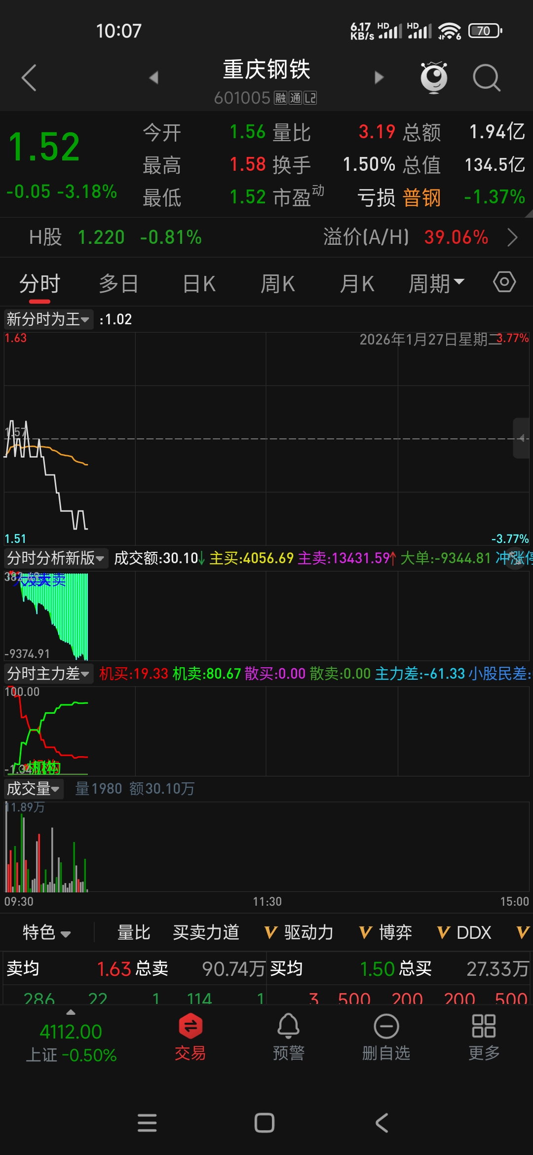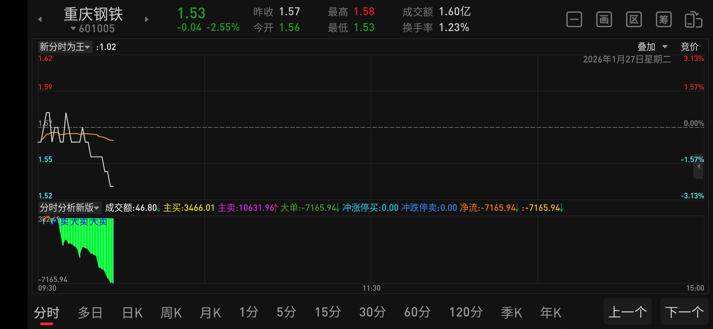 又吸收了几千万带血的筹码,大家坚持住,保护自己的筹码不被庄家拿走。这里面应该有一个巨庄在伺机而动。昨天的拉升就是证明,短时间拉到1.64的目的就是为了上洗套牢盘,今天随大盘下洗获利盘,把之前1.41到1.5买进的筹码洗出去,大家坚持住啊!别上当。