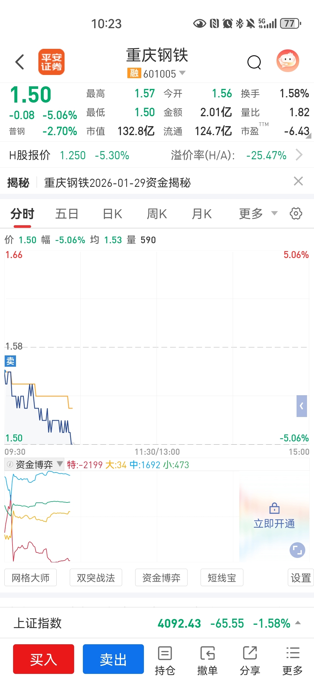 $重庆钢铁(SH601005)$ 幸亏早上竞价全跑了