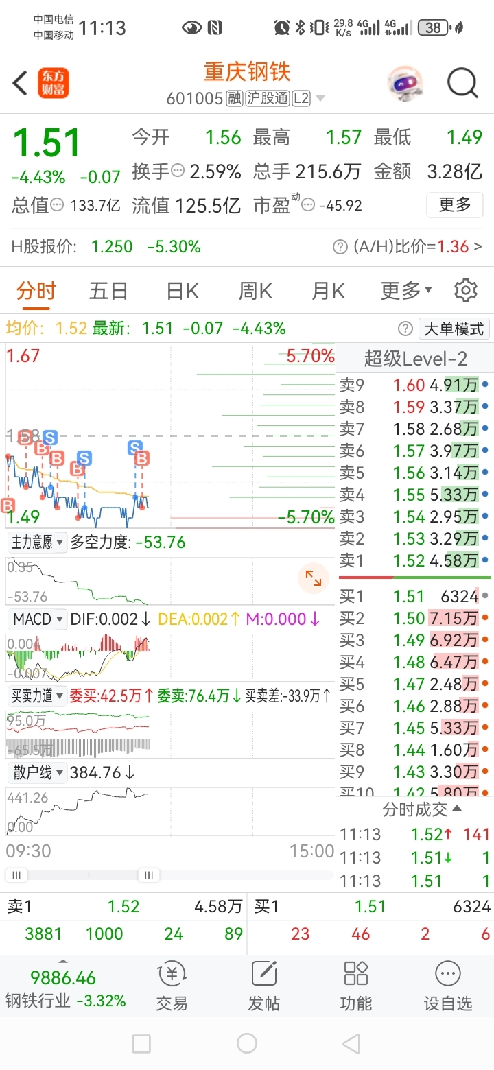 $重庆钢铁(SH601005)$ 小样,我还治不了你!