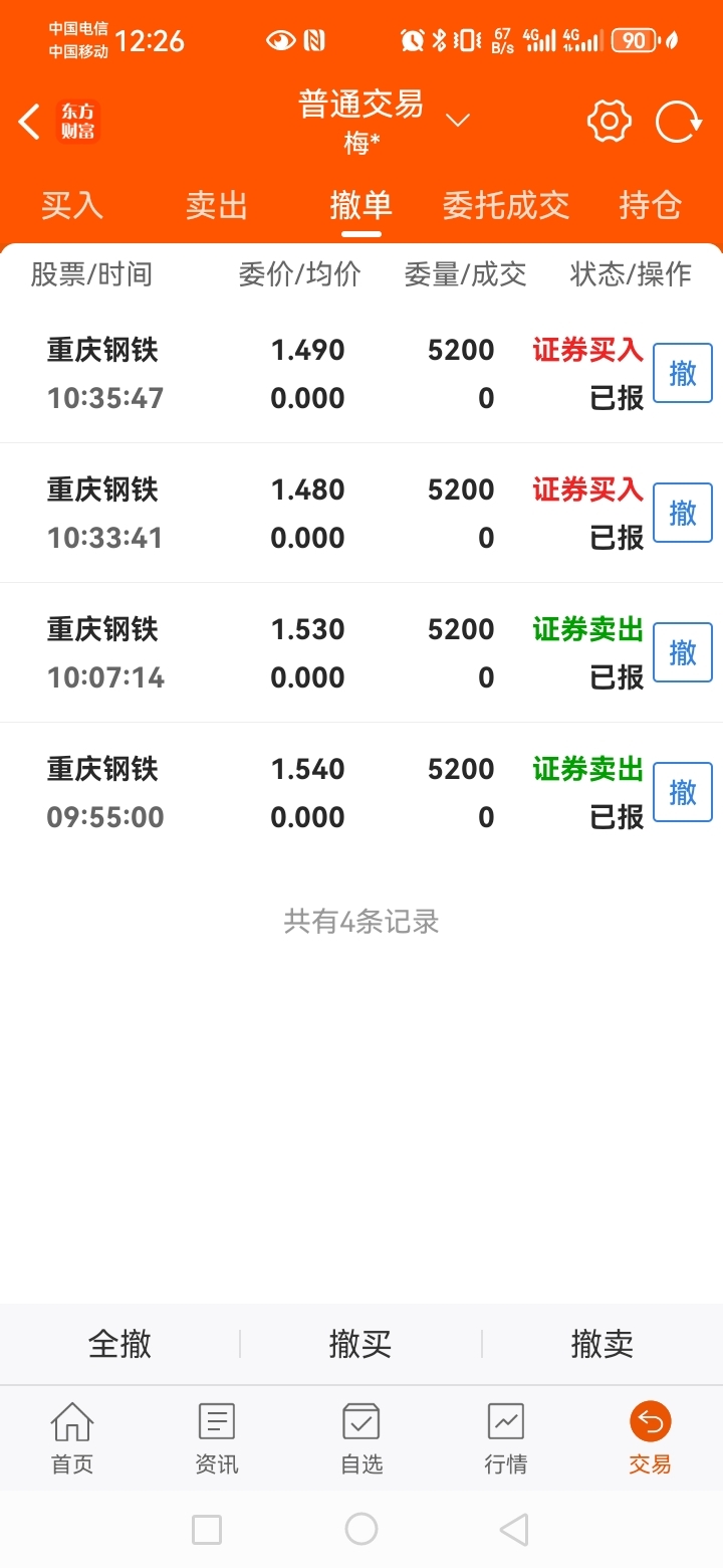 $重庆钢铁(SH601005)$ 下午1.49和1.48给兄弟们护盘,兄弟们先走。