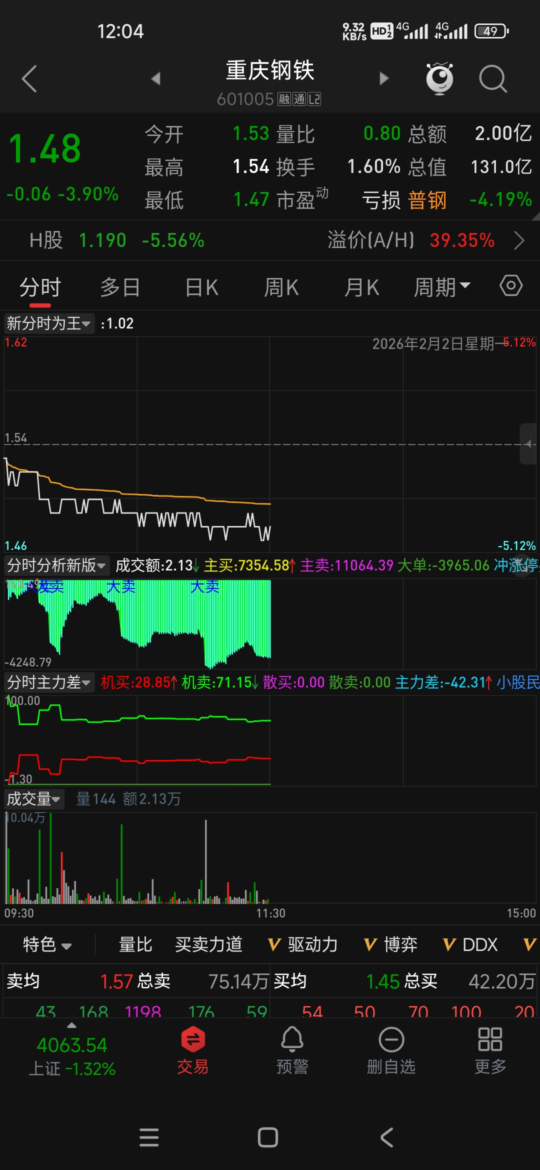 今天全是大单卖出,看来支撑不住了。