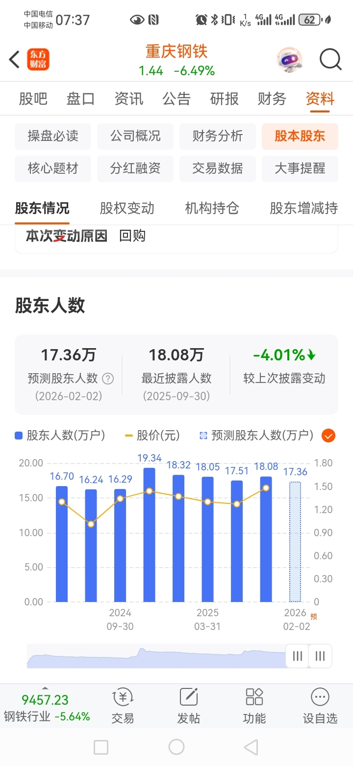 $重庆钢铁(SH601005)$ 昨天一天散户增加3千人。哎,没得玩咯,看谁熬到最后了。