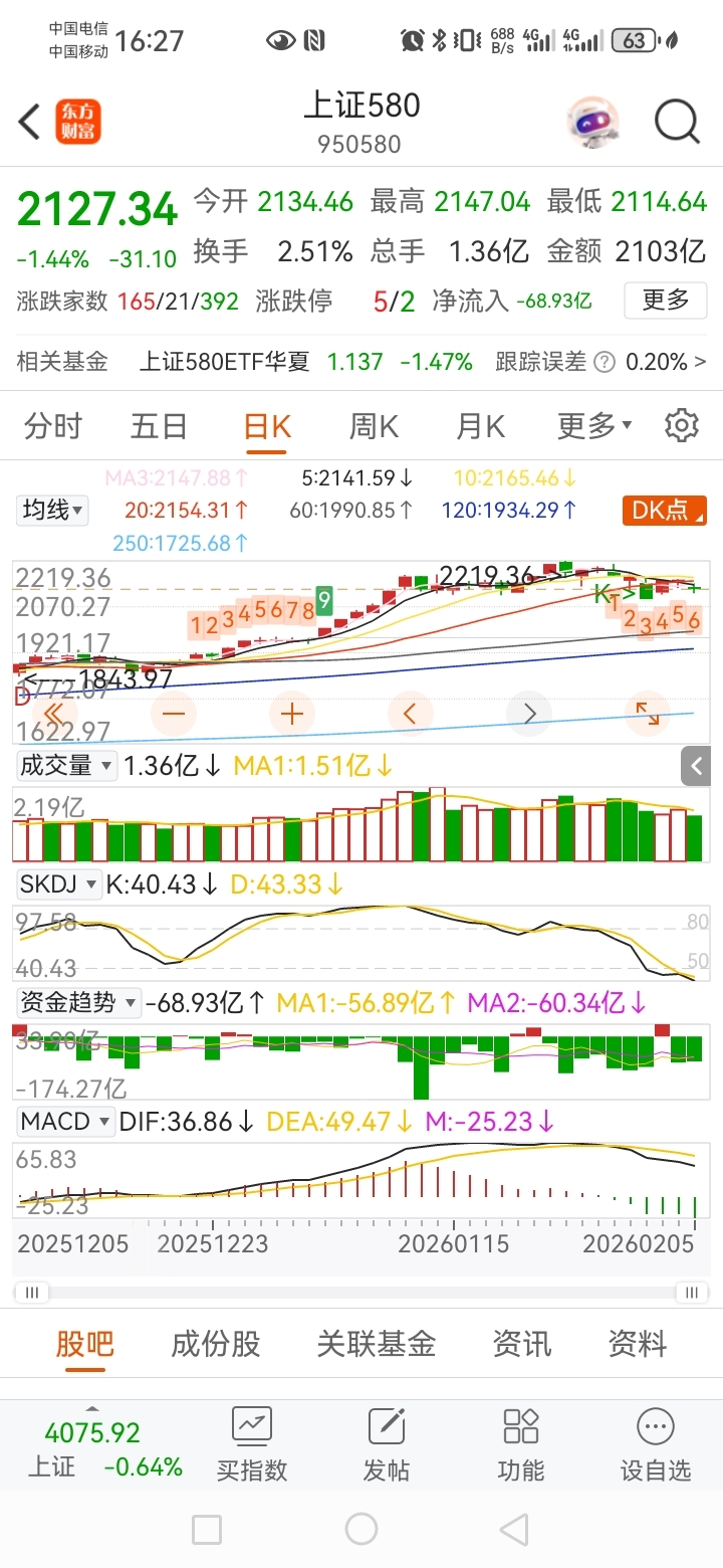 上证580,中证2000,中证1000趋势已经走坏,只能买大蓝筹。