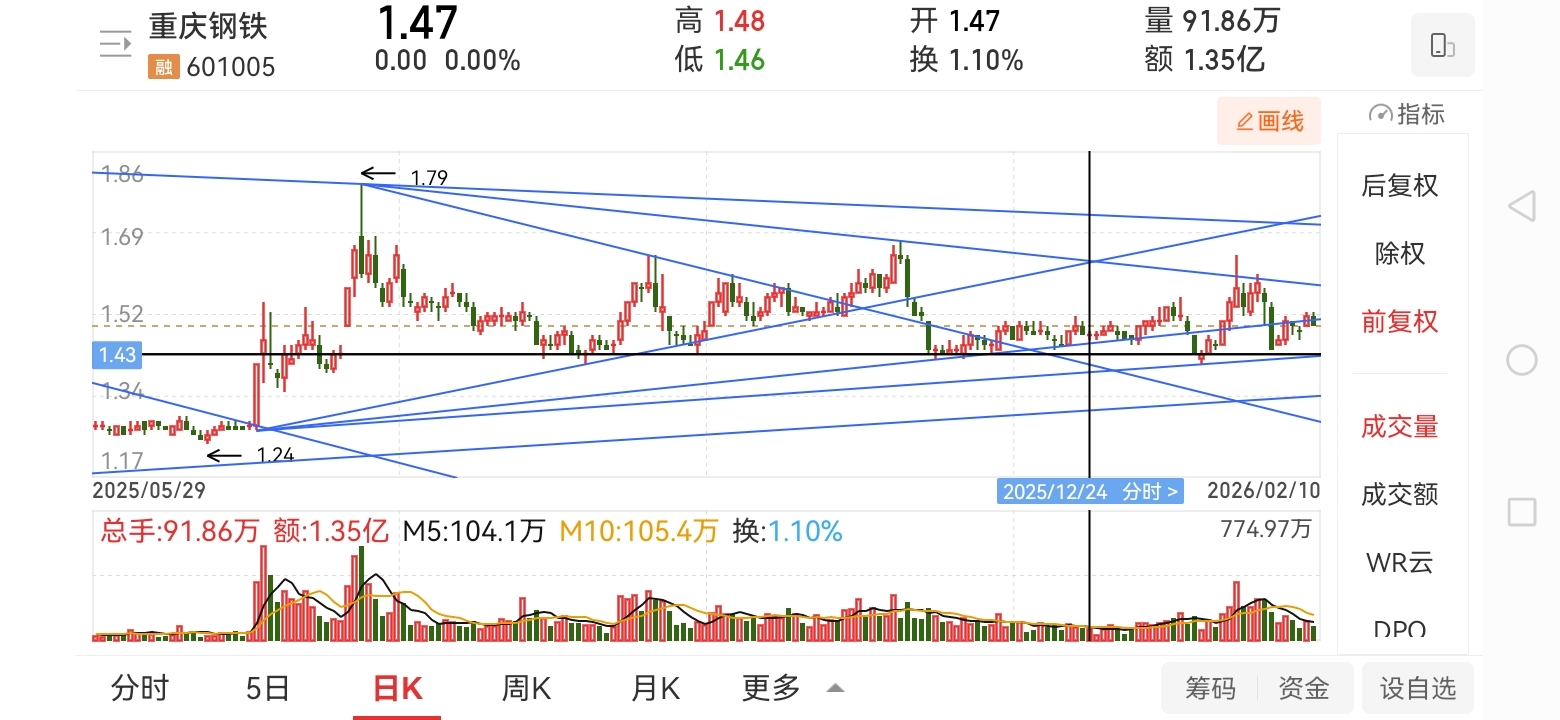 $重庆钢铁(SH601005)$ 还得回踩1.43