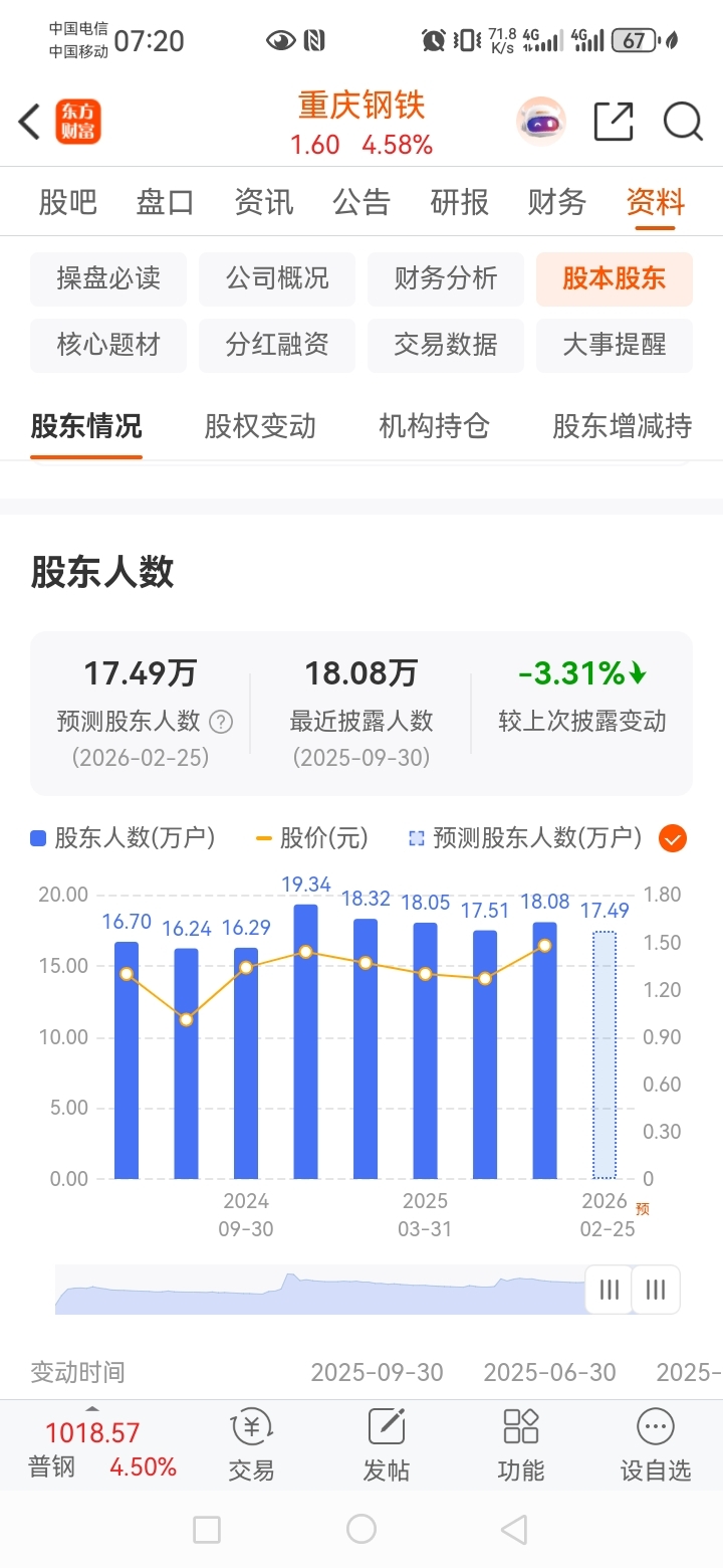 $重庆钢铁(SH601005)$ 重大利好!昨天一天散户增加4千人。