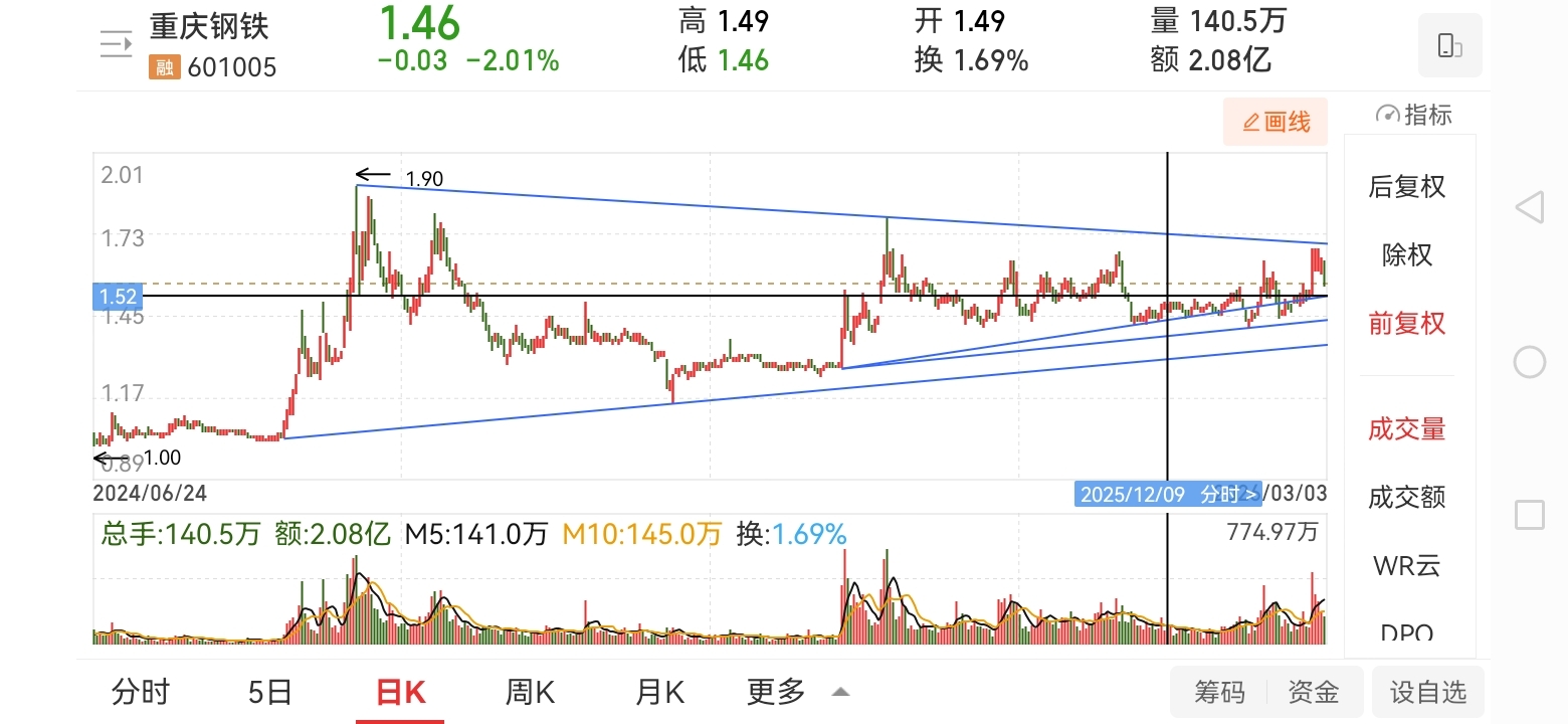 $重庆钢铁(SH601005)$ 明天短线第一支撑位1.52。