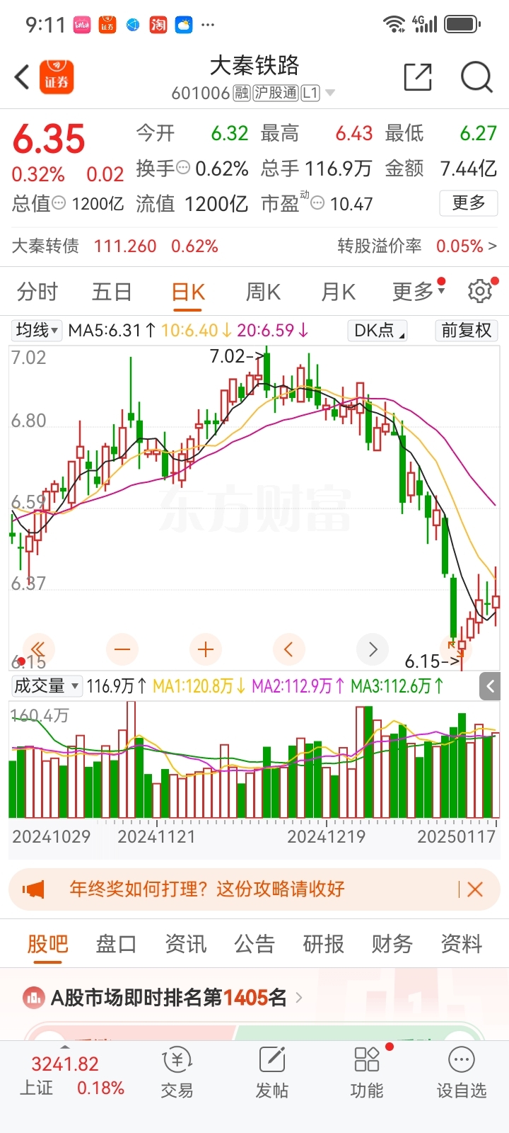 大秦铁路(SH601006)$ 大霄老师说大秦是只好股特别适合老同志,6元以下极具性价比放心扫货,6元以下存款搬家,4元以下卖房卖车