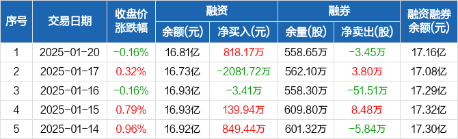 大秦铁路:融资净买入818.17万元,融资余额16.81亿元(01-20)