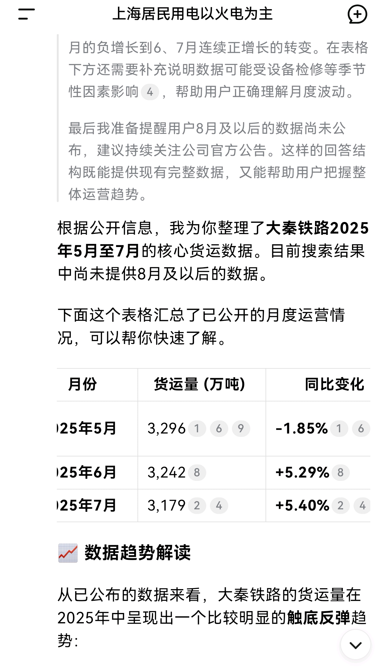 我其实就觉得上海7-9月空调几乎没停,就查了查上海用电是火力发电为主吗,然后DeepSeek回答95%以上火力发电,高峰会用新能源发电。火力新能源比例1100:50。雅水建成前不打会大改变吧。虽然无法在公开信息中找到“大秦铁路直接为上海某电厂供煤”这样的直接证据,但基于大秦铁路覆盖全国的能源供应网络及其与东南沿海港口紧密衔接的运输模式,可以合理地推断,上海的电力供应体系中,很可能包含着来自这条“中国重载第一路”所输送的能源。对了“中国重载第一路——大秦铁路”可是被记在高中课本里的