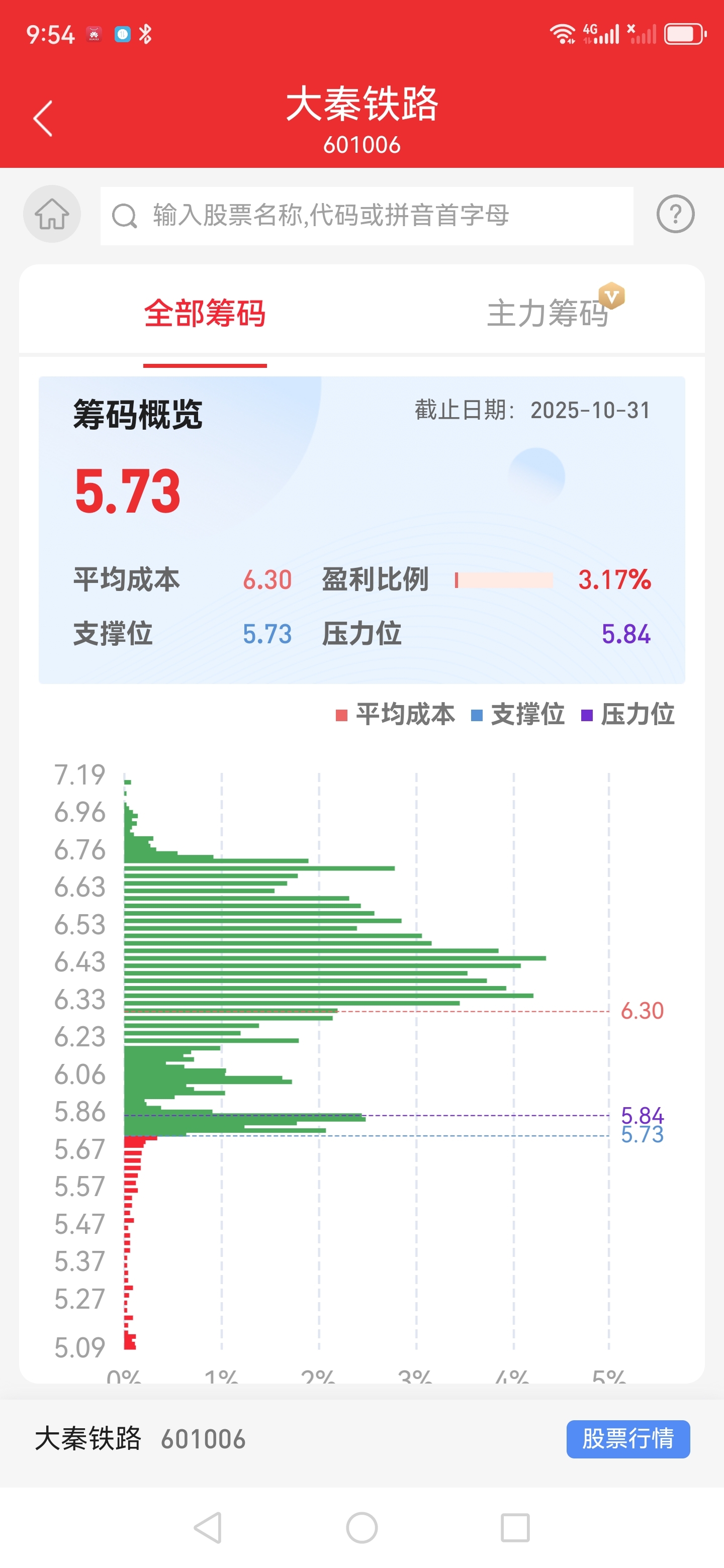 $大秦铁路(SH601006)$ 看筹码分布图看看还有几个人挣钱?