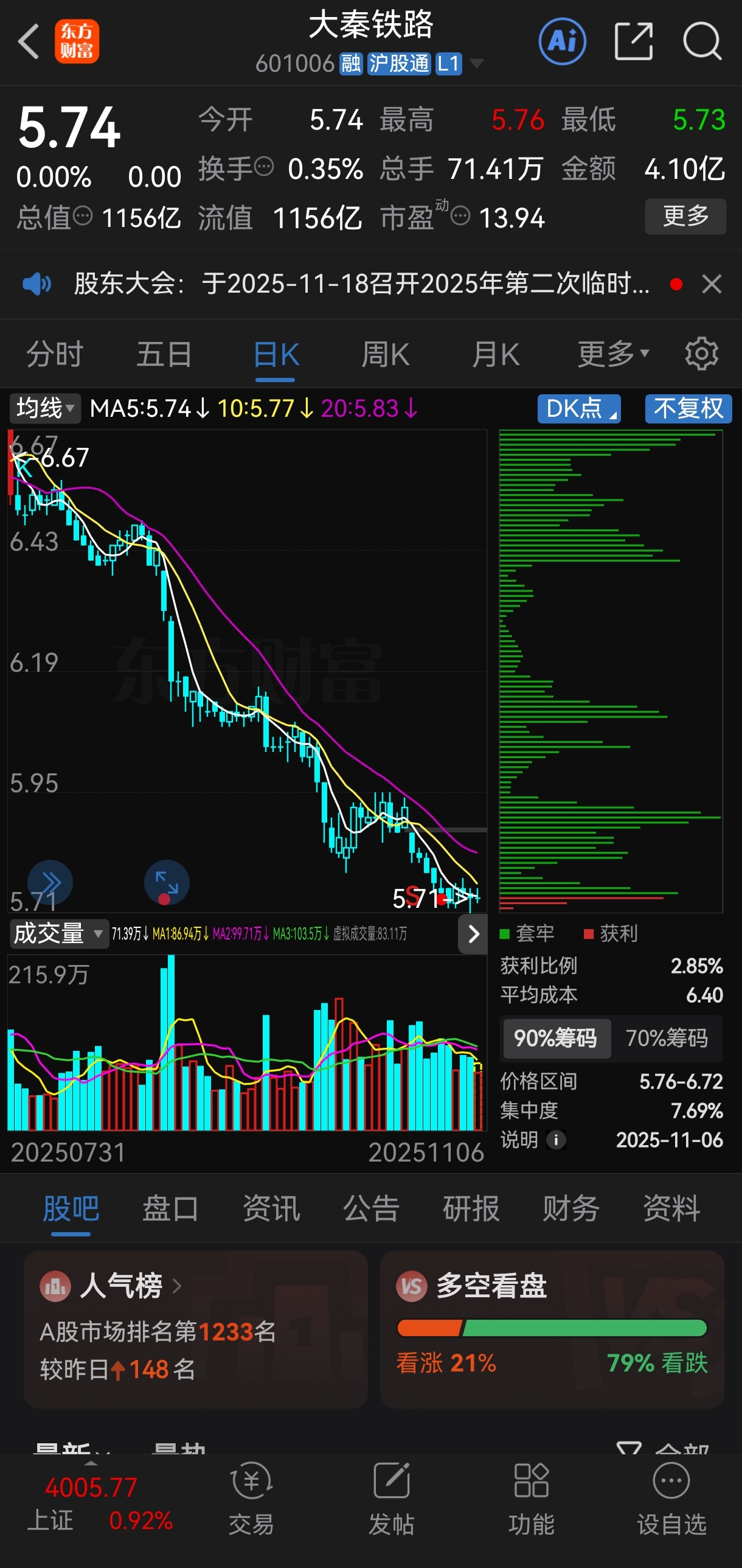 $大秦铁路(SH601006)$ 分红也不行,一直跌不停【股市有风险,入市需谨慎】