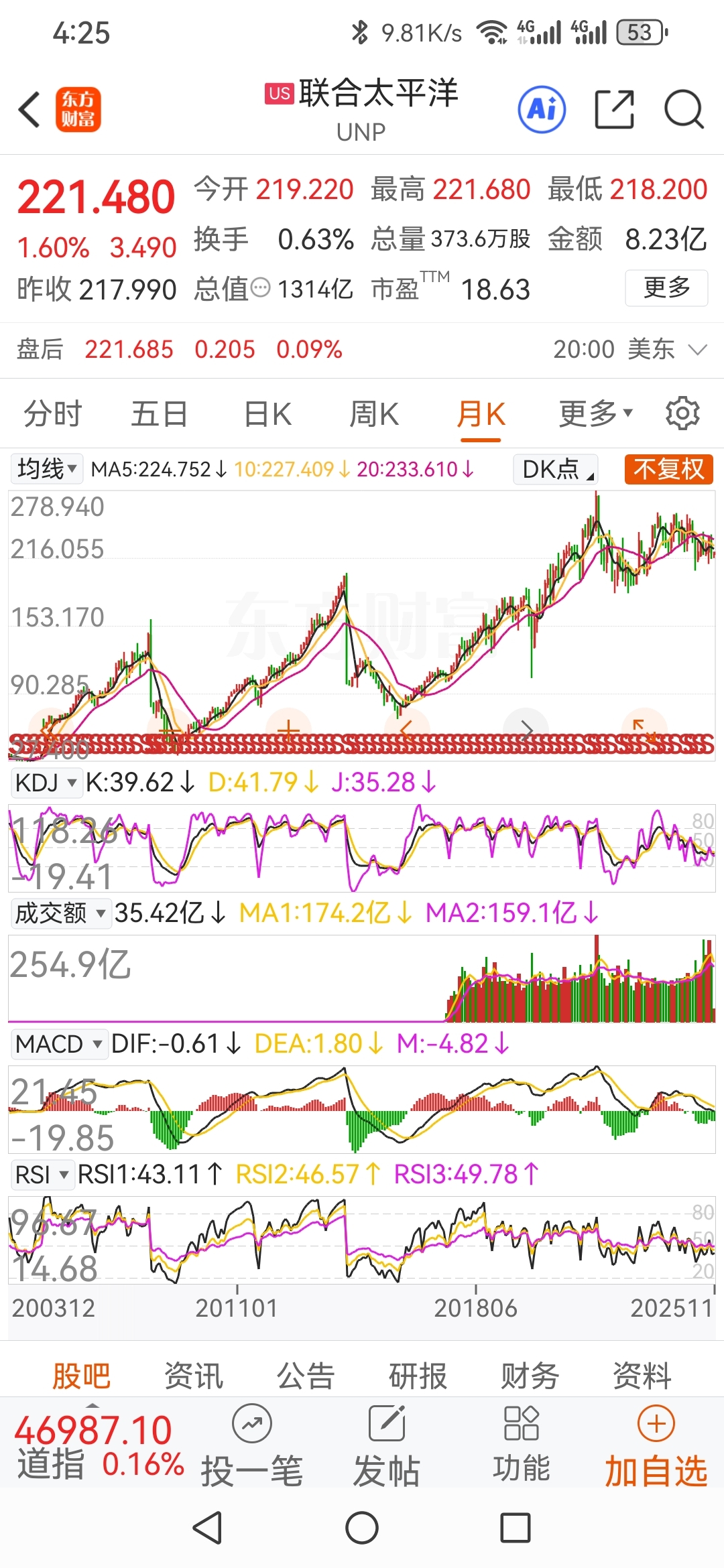 $大秦铁路(SH601006)$ 美国铁路股票--联合太平洋的K线图,也许以后大秦铁路也会这样走