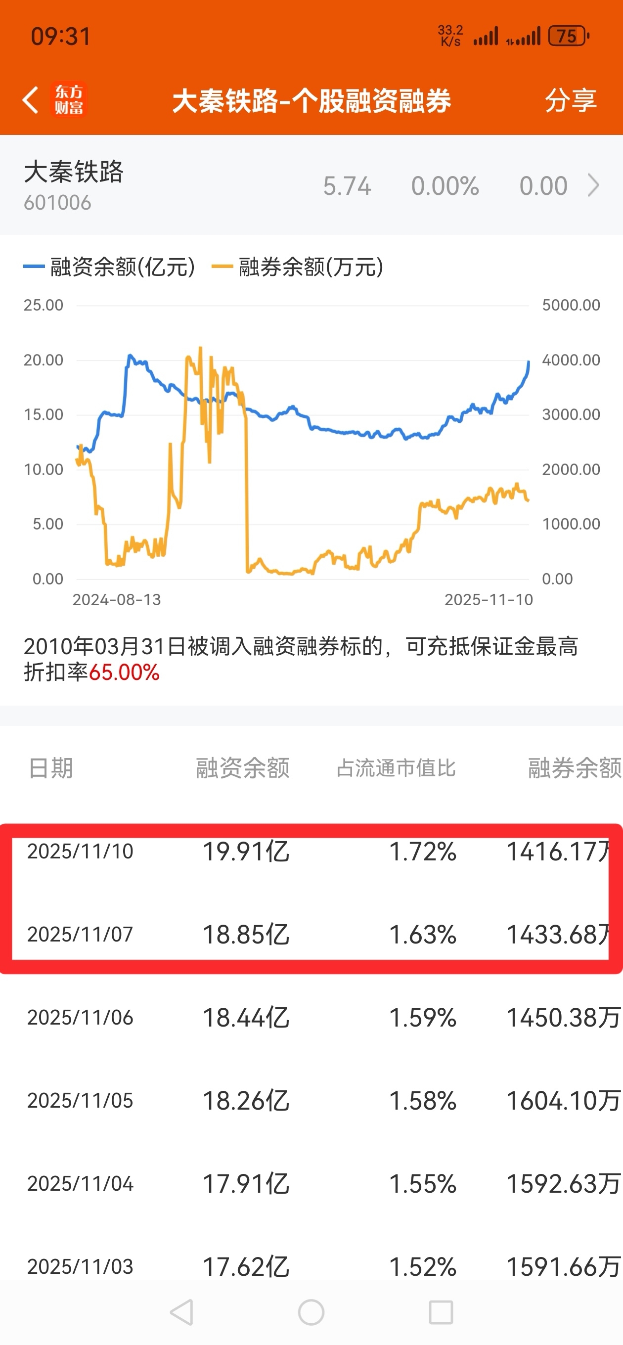 $大秦铁路(SH601006)$ 融资客真的猛,一天买一个多亿