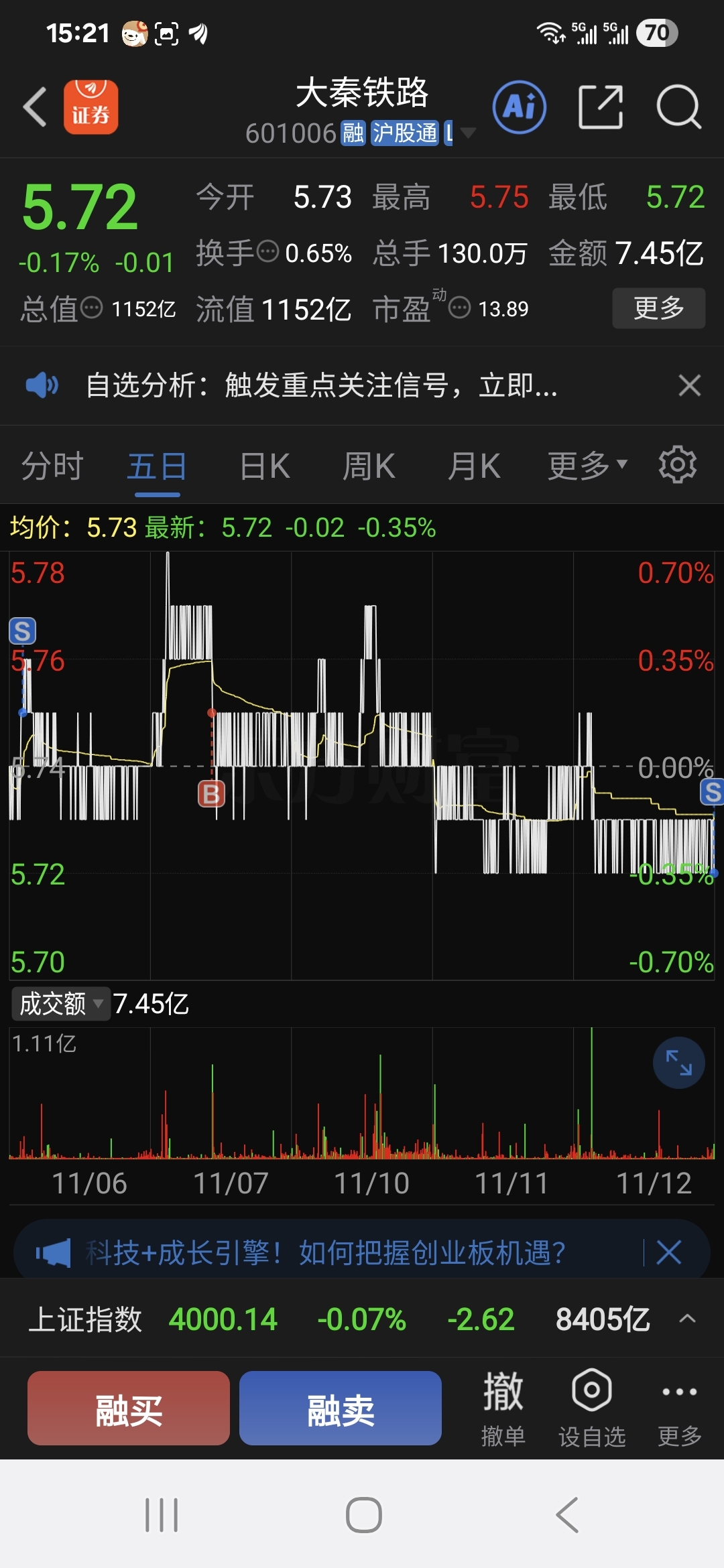 $大秦铁路(SH601006)$ 各位道友,我陈近南在今天尾盘竞价最后一秒出清大秦铁路,时间点上尾盘还是没有动静就要执行斩仓纪律,575成本赔了几千大元,总比明天去犯错喋喋不休地去补仓再去掏空你的口袋要好吧,我陈近南先行告辞对不起大家了,青山不改,绿水长流,后会有期……