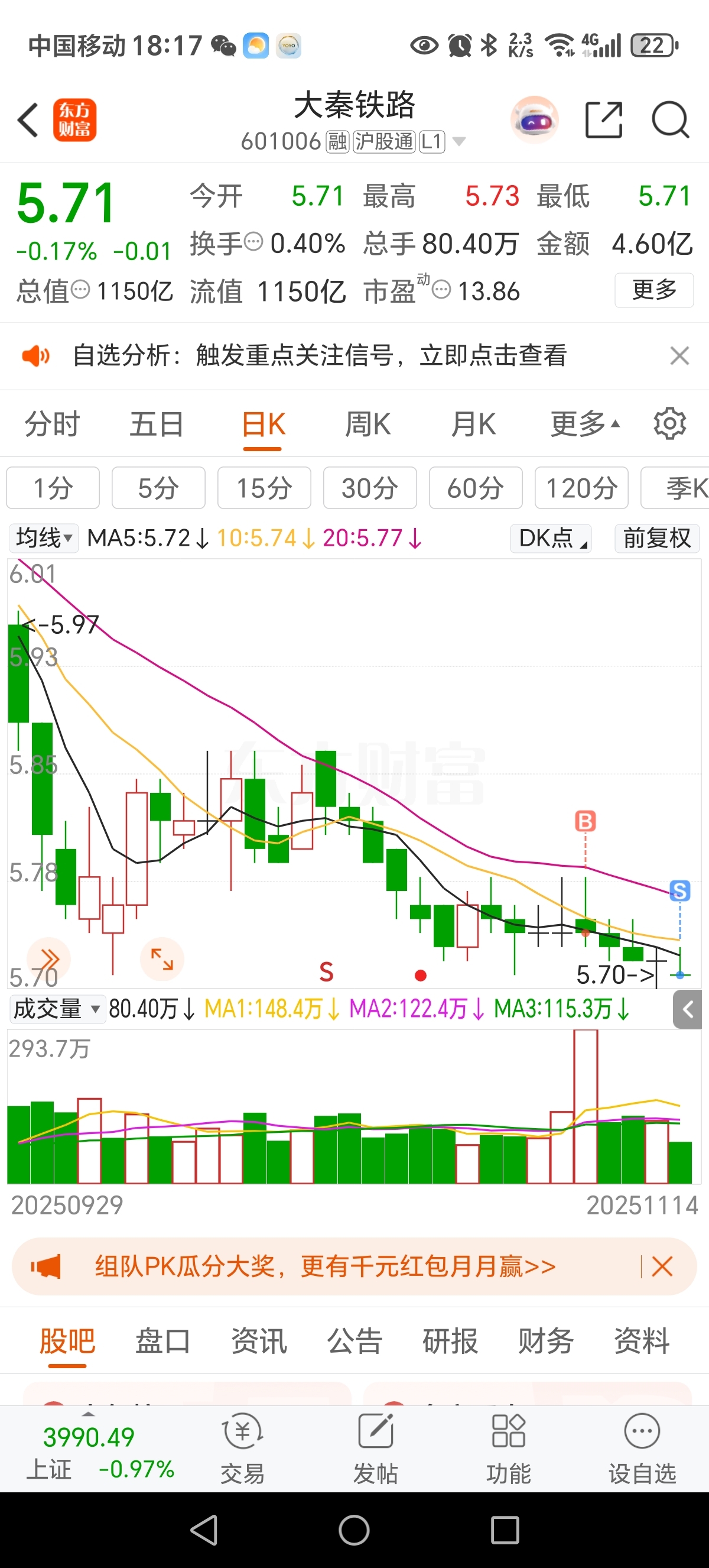 $大秦铁路(SH601006)$ 终于跑出来了