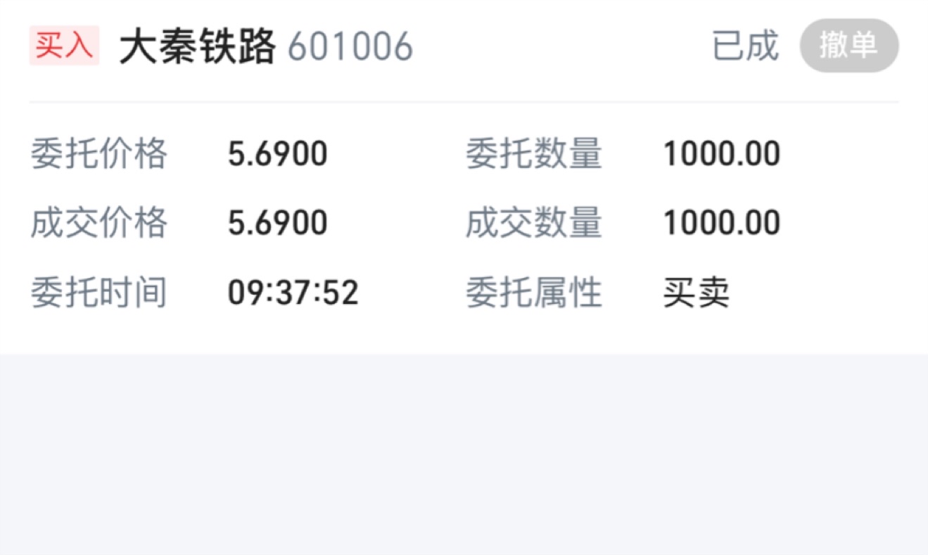 $大秦铁路(SH601006)$ 先干10手。先买为敬。你们看着办啊