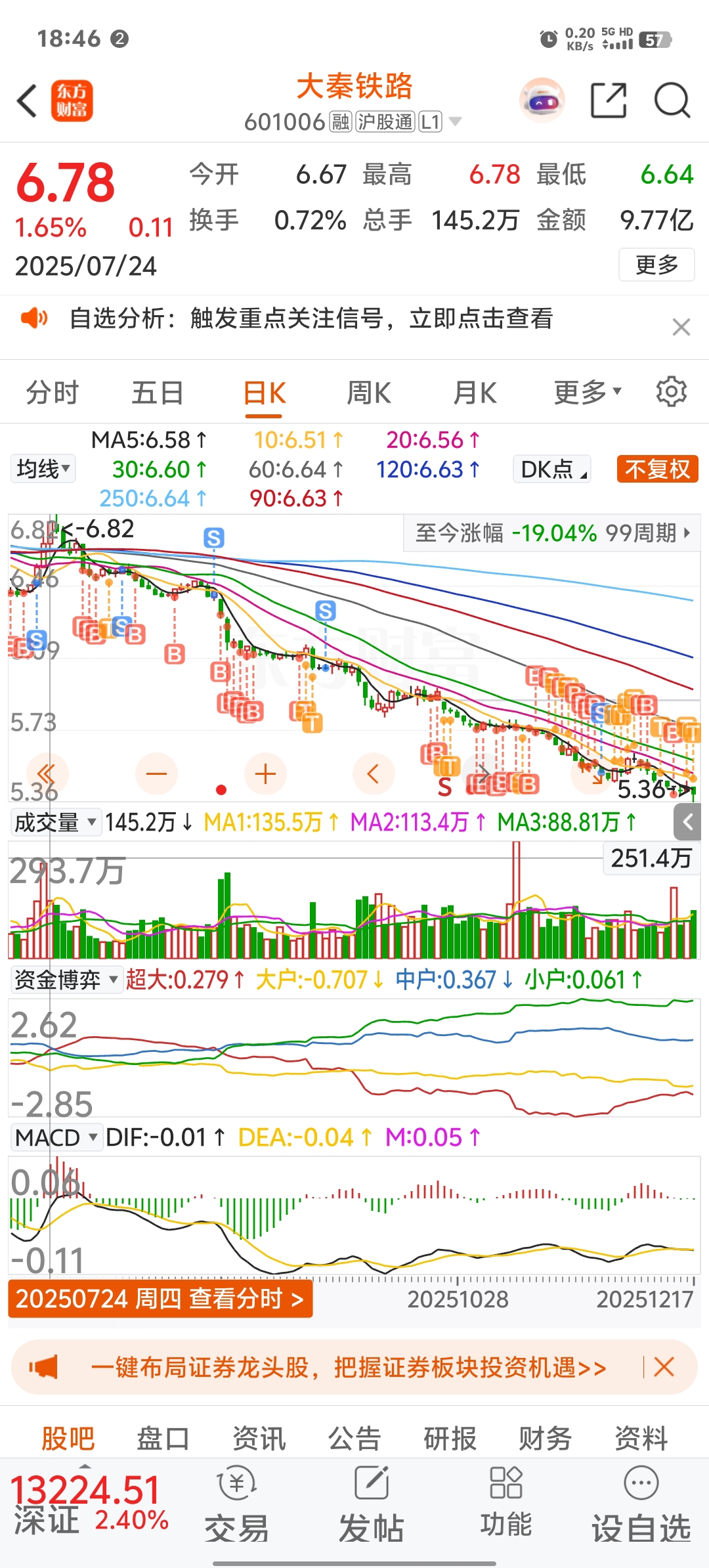 谁说不可蚍蜉撼大树的?我已经把大秦市值干下来不少了再加把劲,年前还能再干-5%