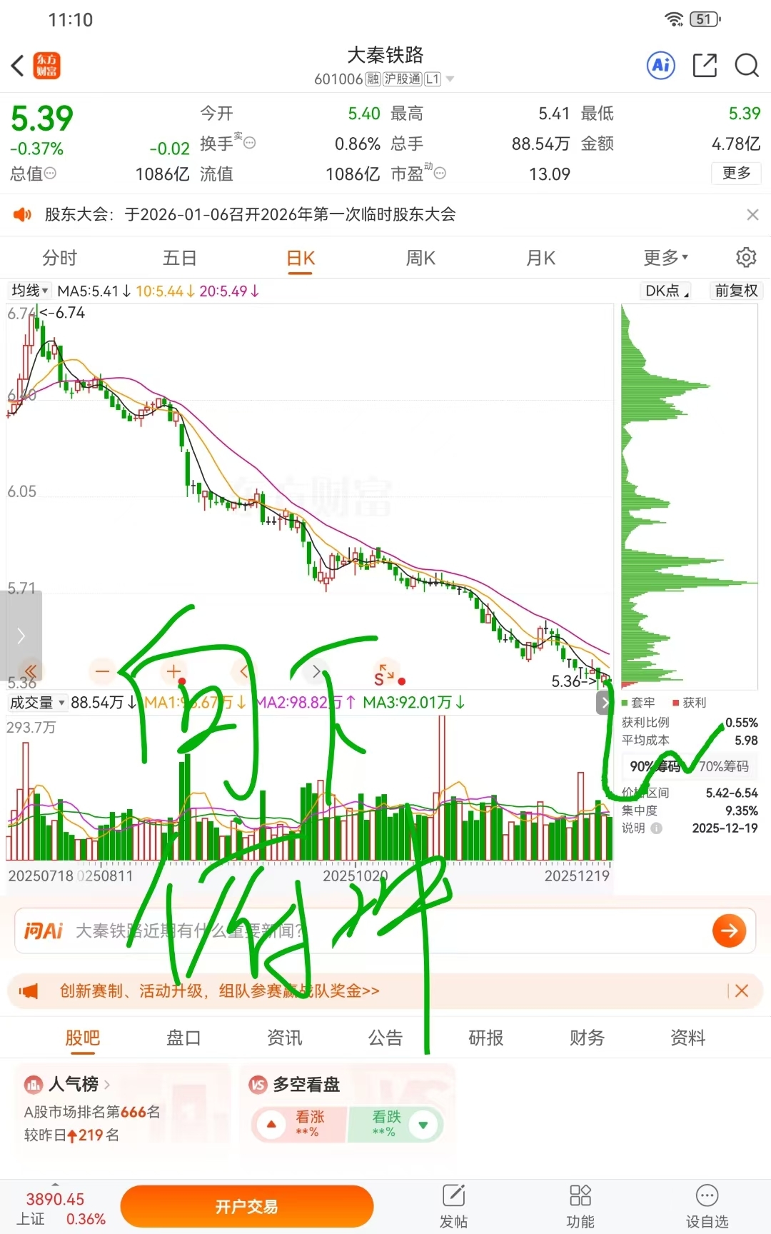 $大秦铁路(SH601006)$ 这个走势是人都看得出来,还会有个大阴线,才是短期见底标志,抄底的散户太多,没人会在这里拉,要不直接砸个5个点以上,要么诱多一下再往下砸,出放量大阴线就是短期见底标志