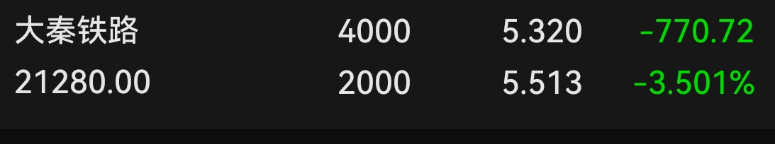 $大秦铁路(SH601006)$ 计划最高持有2万股,已经买了两次,持有4000股。