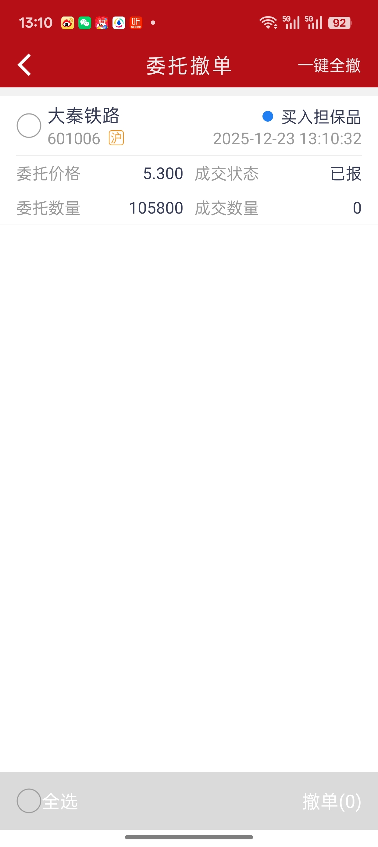 $大秦铁路(SH601006)$ 我挂5.30如果进去我就躺平;如果进不了,我明天就按它每天05%波动下跌的价格再挂单买进去。明天5.26能进吗?
