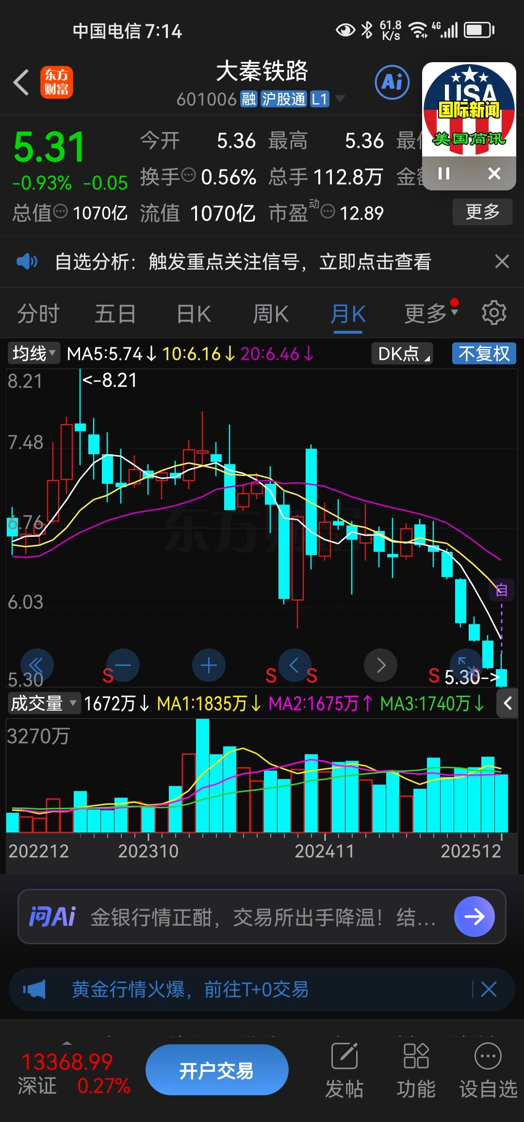 两年前,有一个人,五几年出生,用大钱(一个账户160w,另一个不详),买入,吃利息 ,把ta 几年去南方打工,回东北又开出租的钱,(一辈子的积蓄的钱)都干进去,他一直强调:这个股稳定,不炒垃圾股了!看好大秦。