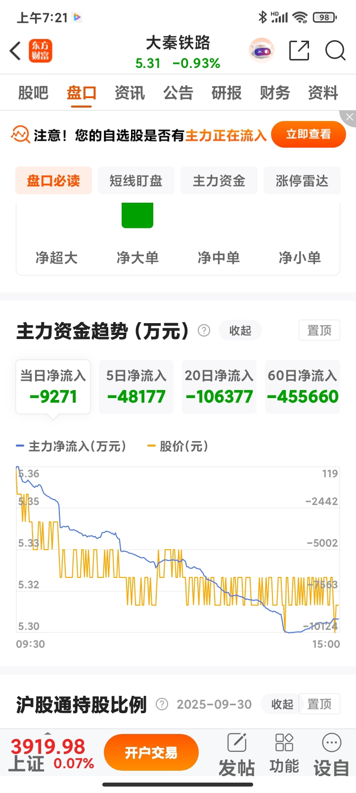 $大秦铁路(SH601006)$ 大秦铁路你怎么回事?聪明资金天天在出