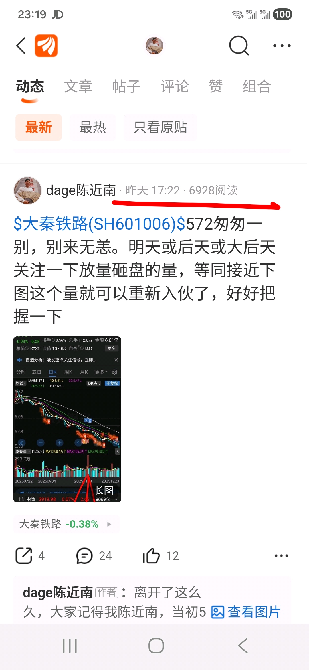 $大秦铁路(SH601006)$ 昨天随手发了一个帖子,阅读量马上干到7000了,我知道了按我的流量,阅读量达到5000,帖子主题所指必兑现,好好把握一下吧,大秦515,还有一番风雨路~
