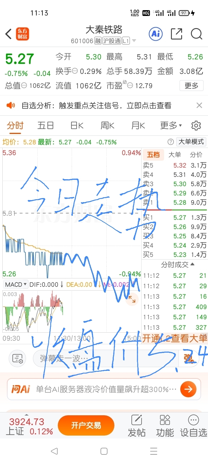 今日收盘价5.24