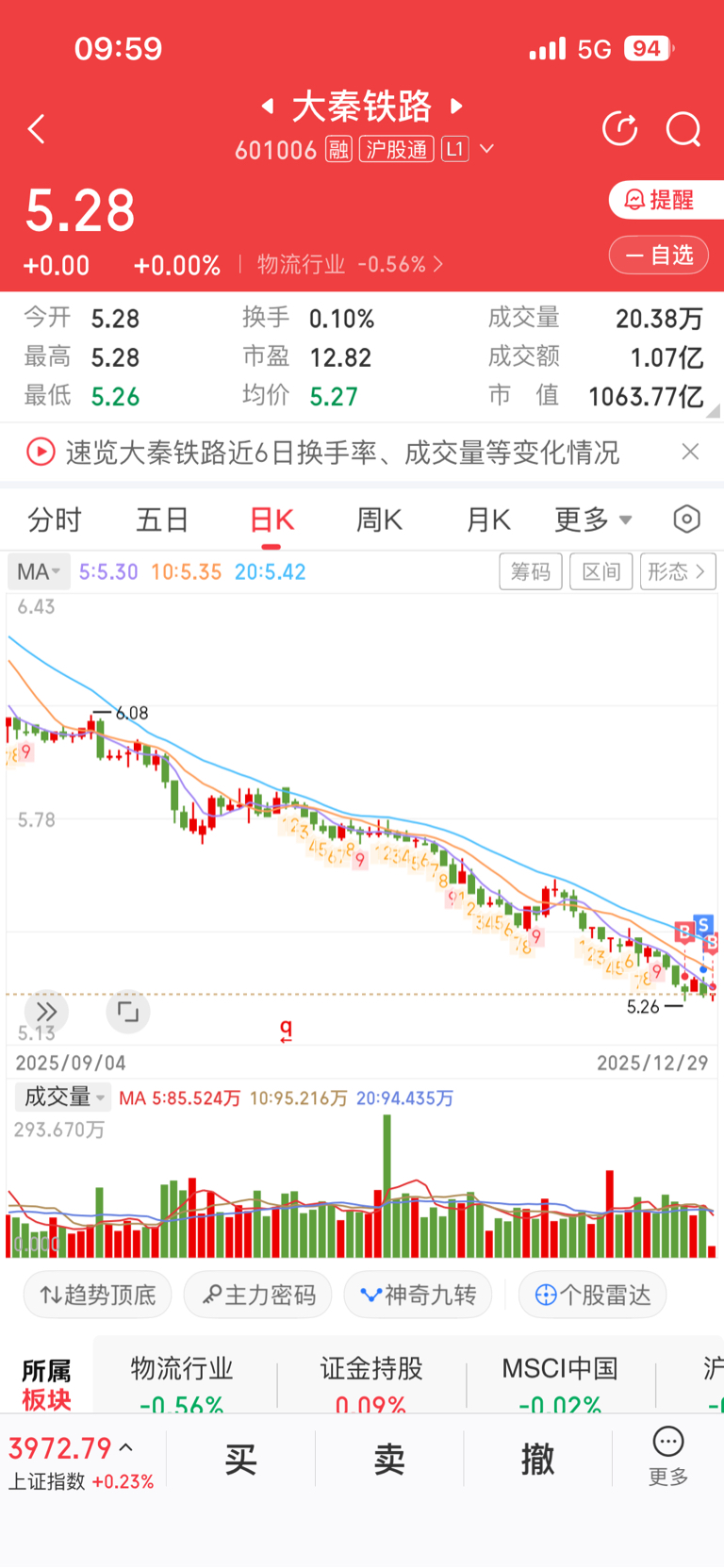 $大秦铁路(SH601006)$ 不管了,先建仓,神奇九转都干5次了,还能有6次吗?
