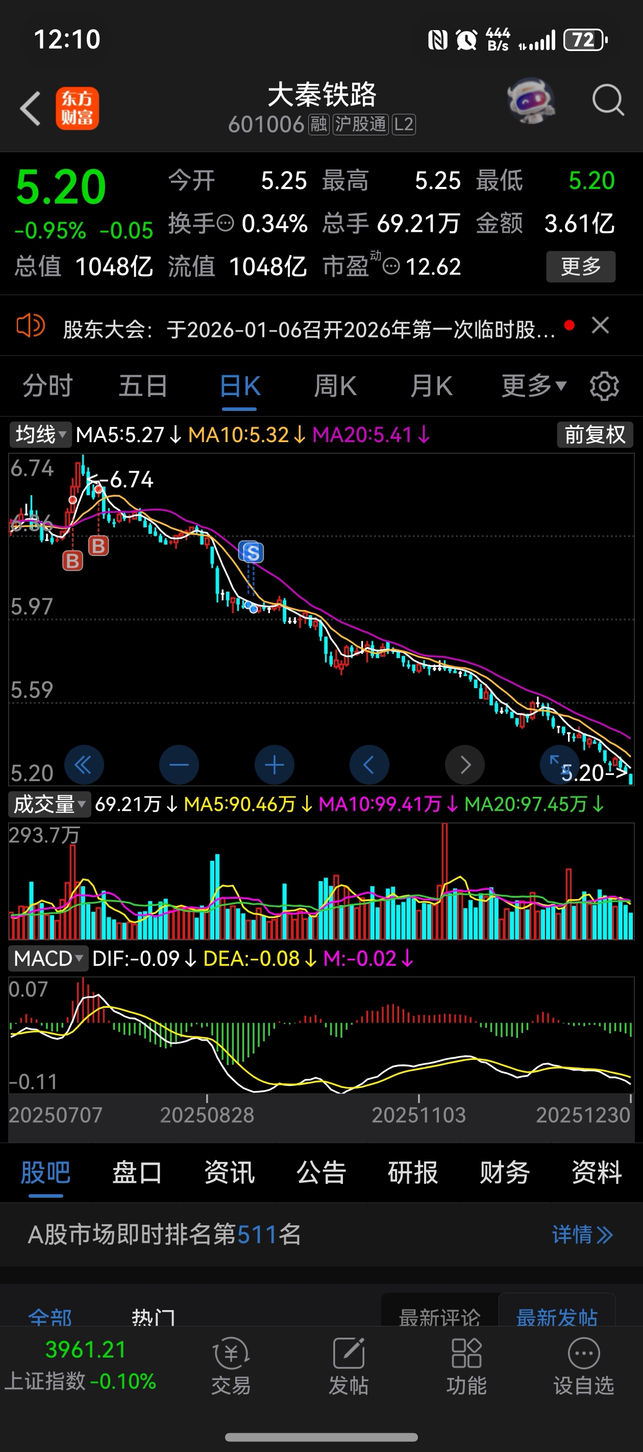 $大秦铁路(SH601006)$ 还好,跑得快,又创新低