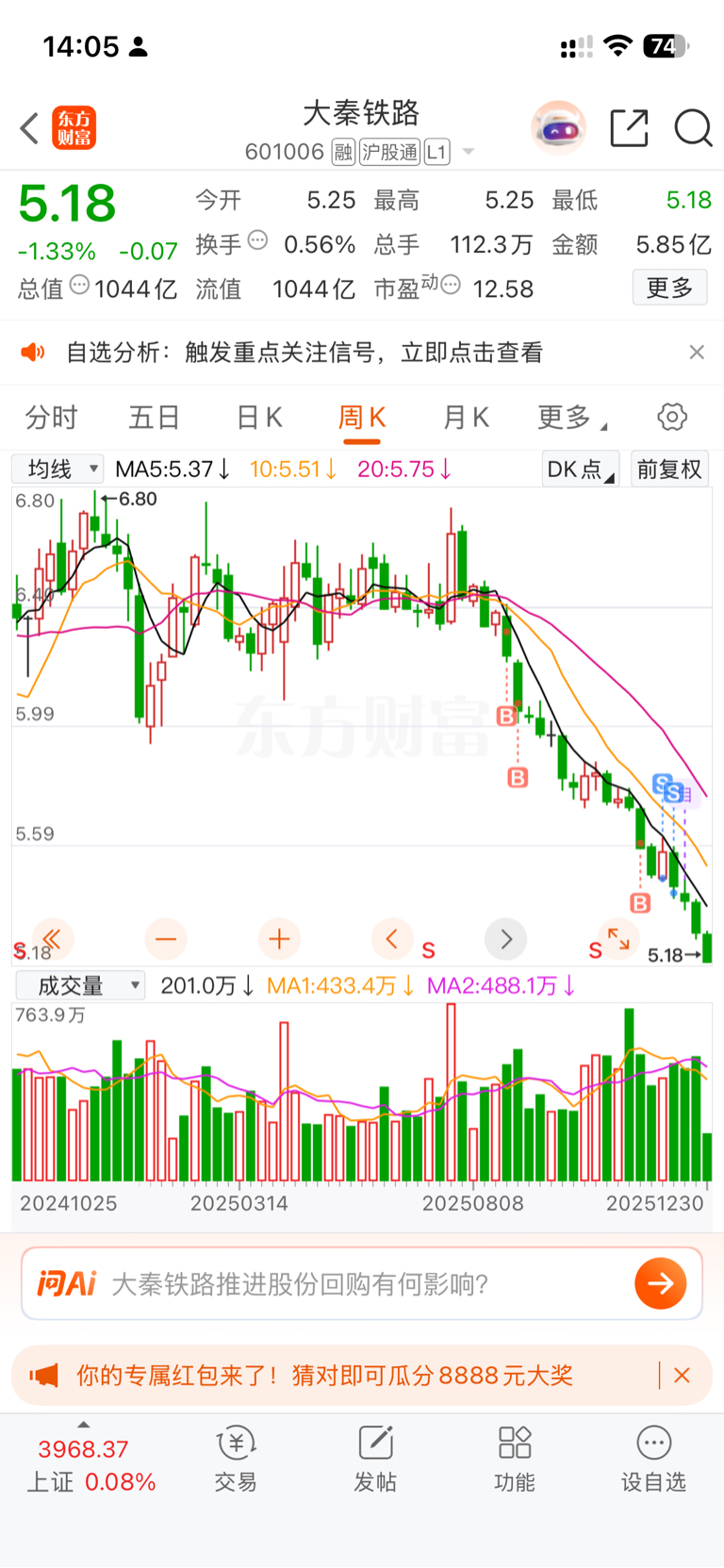$大秦铁路(SH601006)$ 留了100股亏了5000估计是出问题了