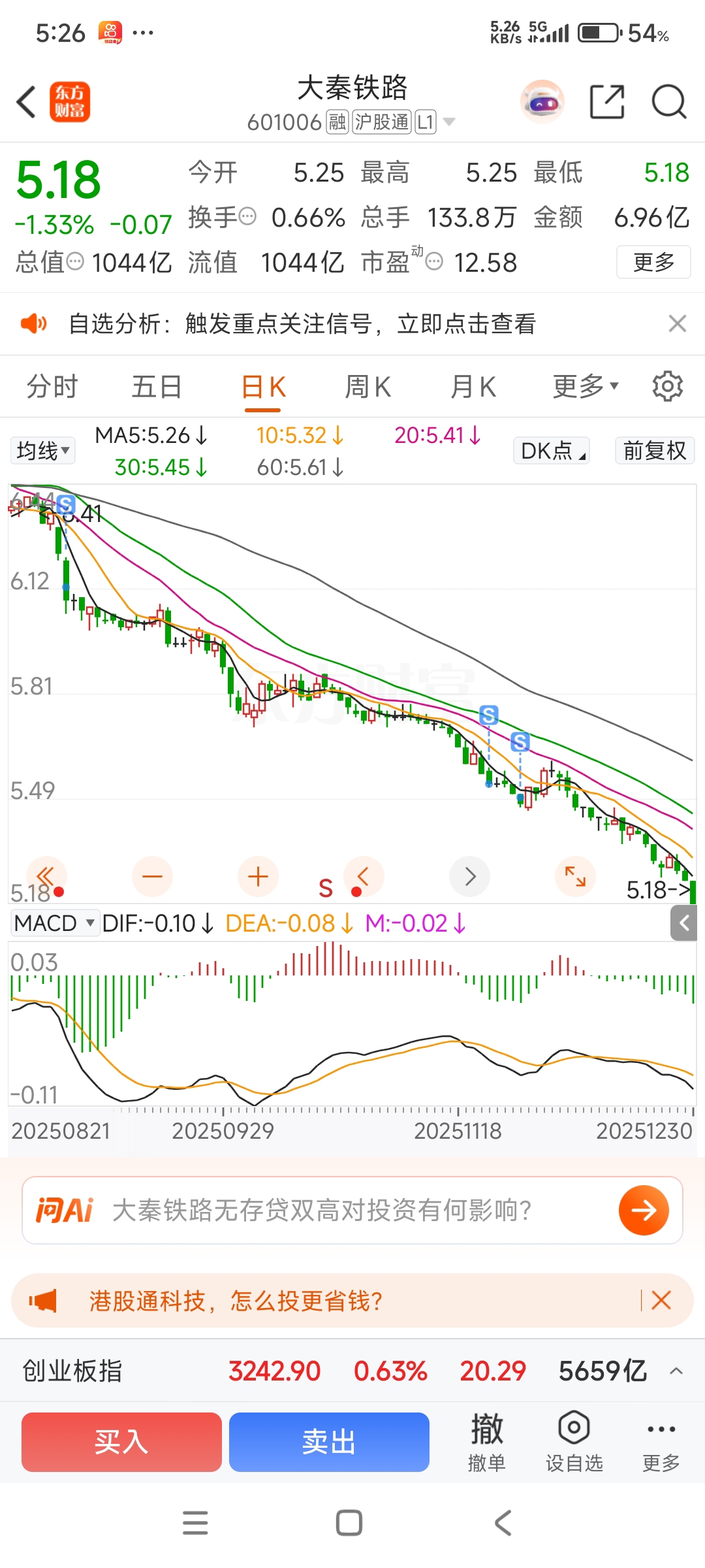 $大秦铁路(SH601006)$ 6.20减了一部分,天天阴跌,感觉不对劲5.50全部清仓。回过头看还是清仓晚了点。要是留到现在,我拿了五年股息基本上全部完蛋。股市挣钱真不容易,我只想拿个股息都这么难。大秦目前己不适合为收息股,4块多才有价值,暂时不会关注了。