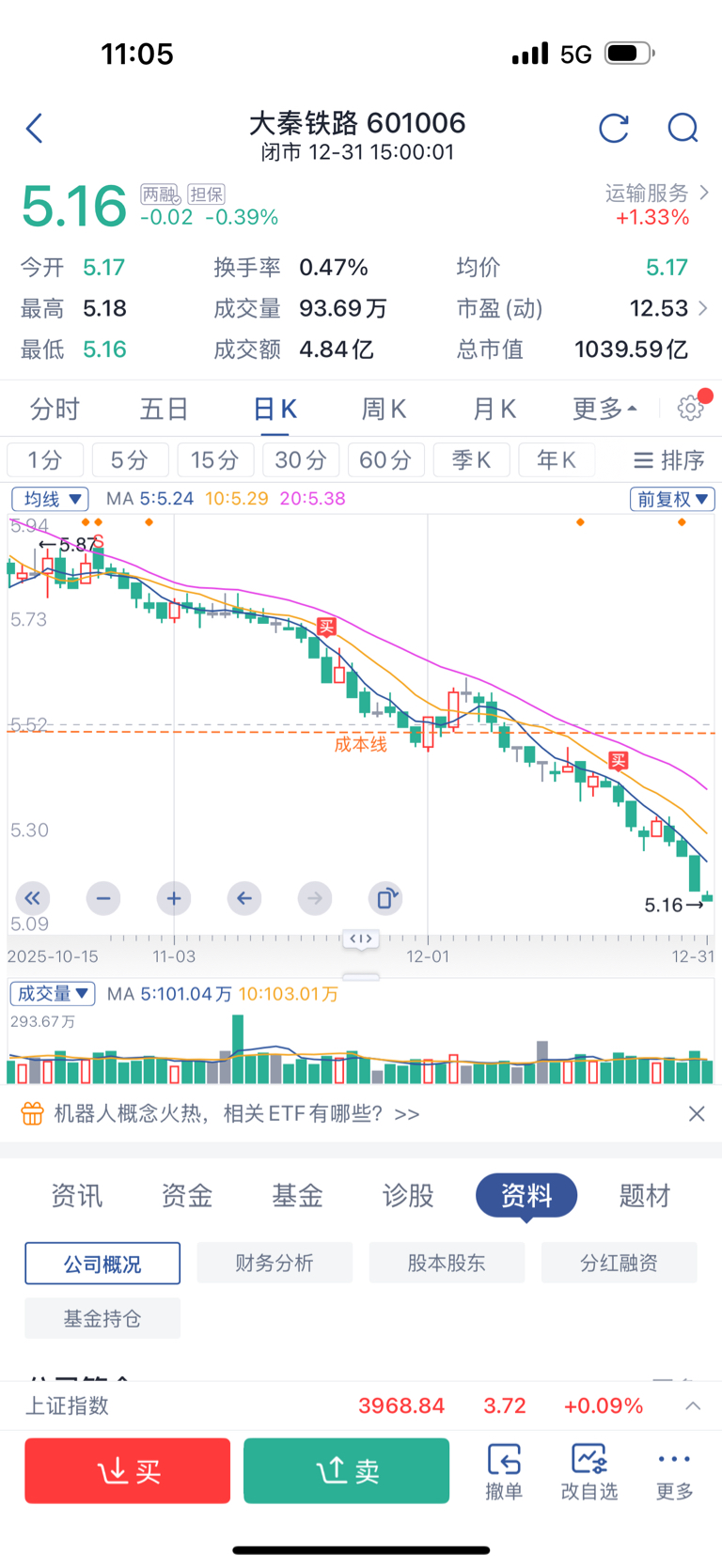 买大秦是稳健,却又被套,不过我是不会割肉的,下周计划5.13再补,每下5个点补一