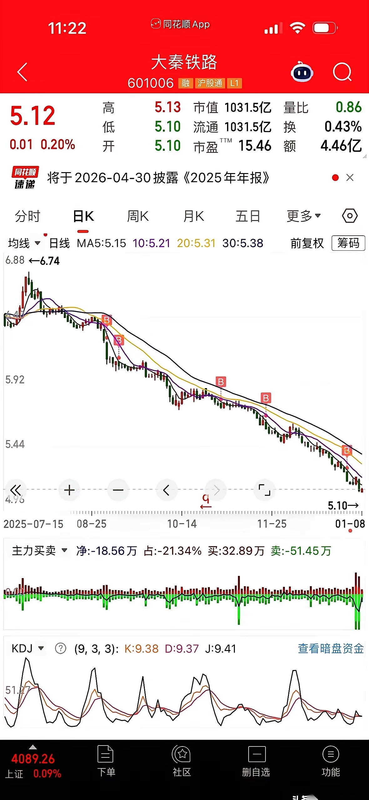 $大秦铁路(SH601006)$ 加仓干,越跌越加