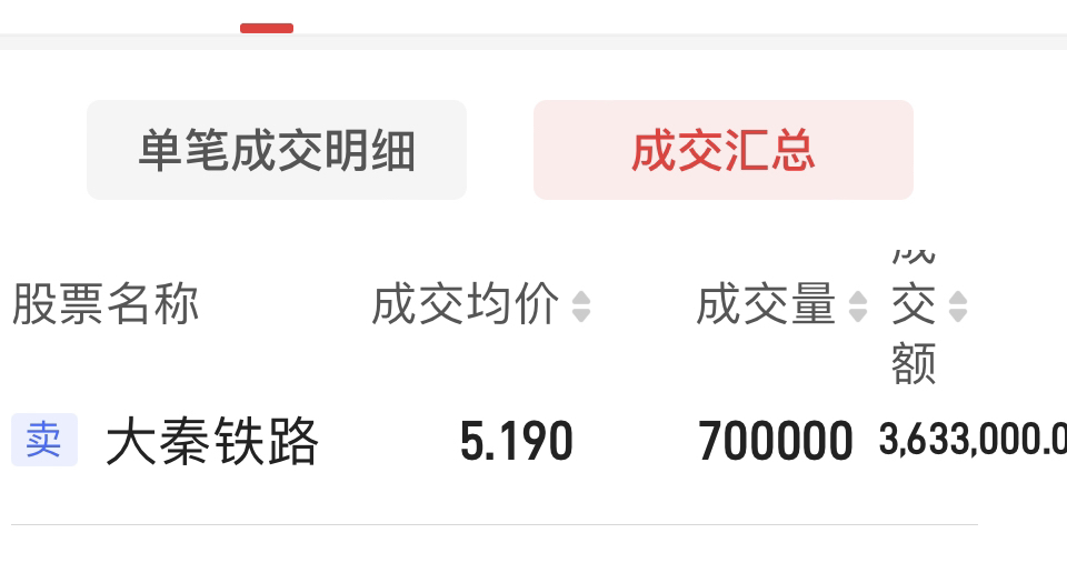 $大秦铁路(SH601006)$ 7000手已全部成交,祝接盘的兄弟们发财