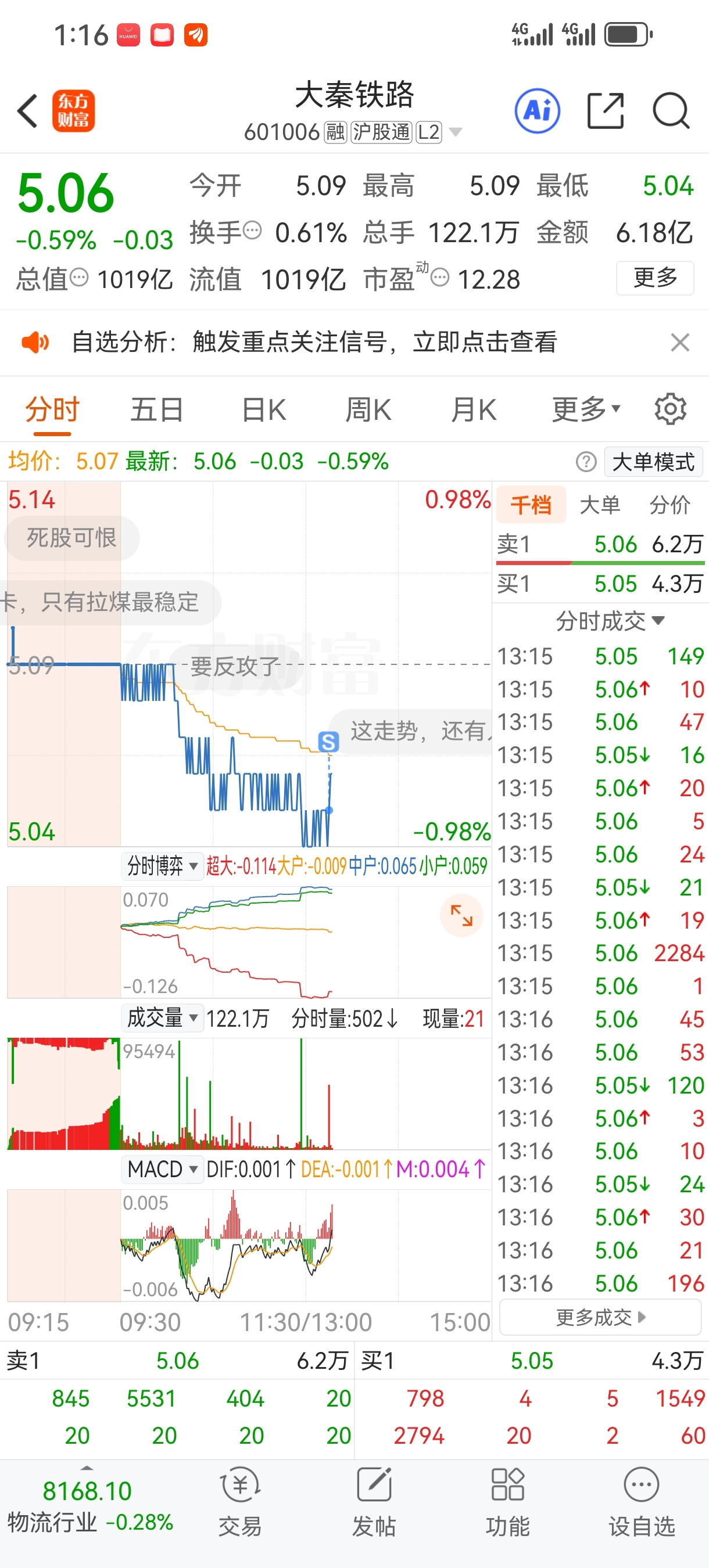 $大秦铁路(SH601006)$ 错过整个牛市还到亏20个点,认输