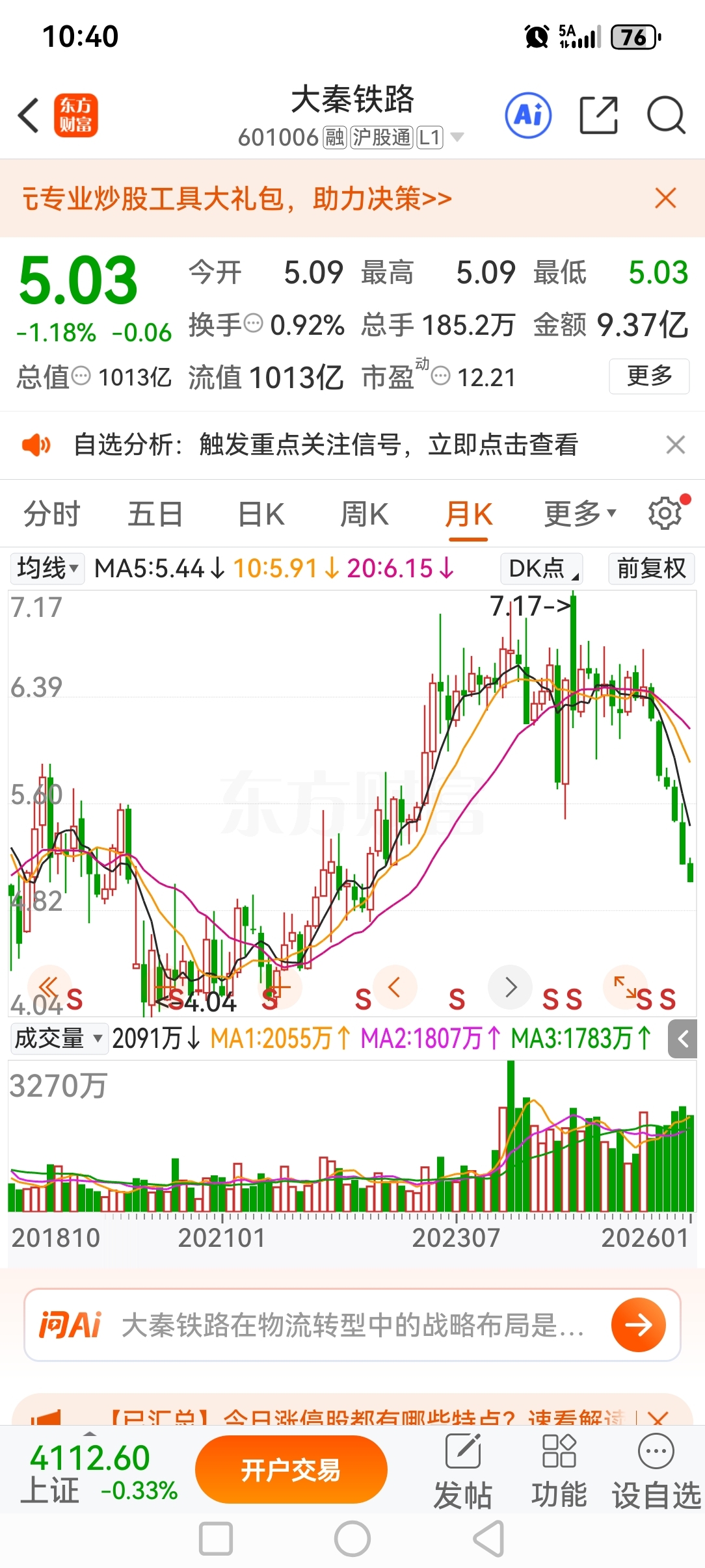 $大秦铁路(SH601006)$ 看月线4.04会止跌的。