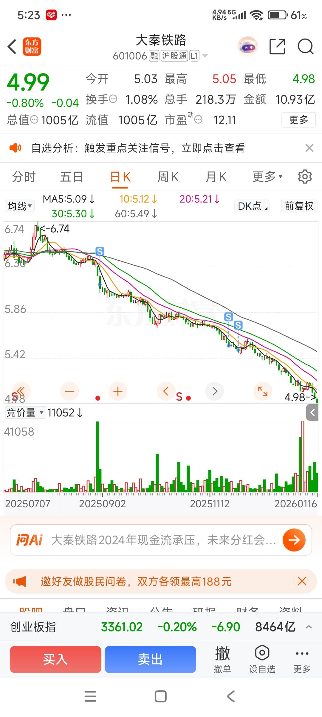 $大秦铁路(SH601006)$ 还好跑了,虽然跑晚了点,不然到现在几年分红全归0。
