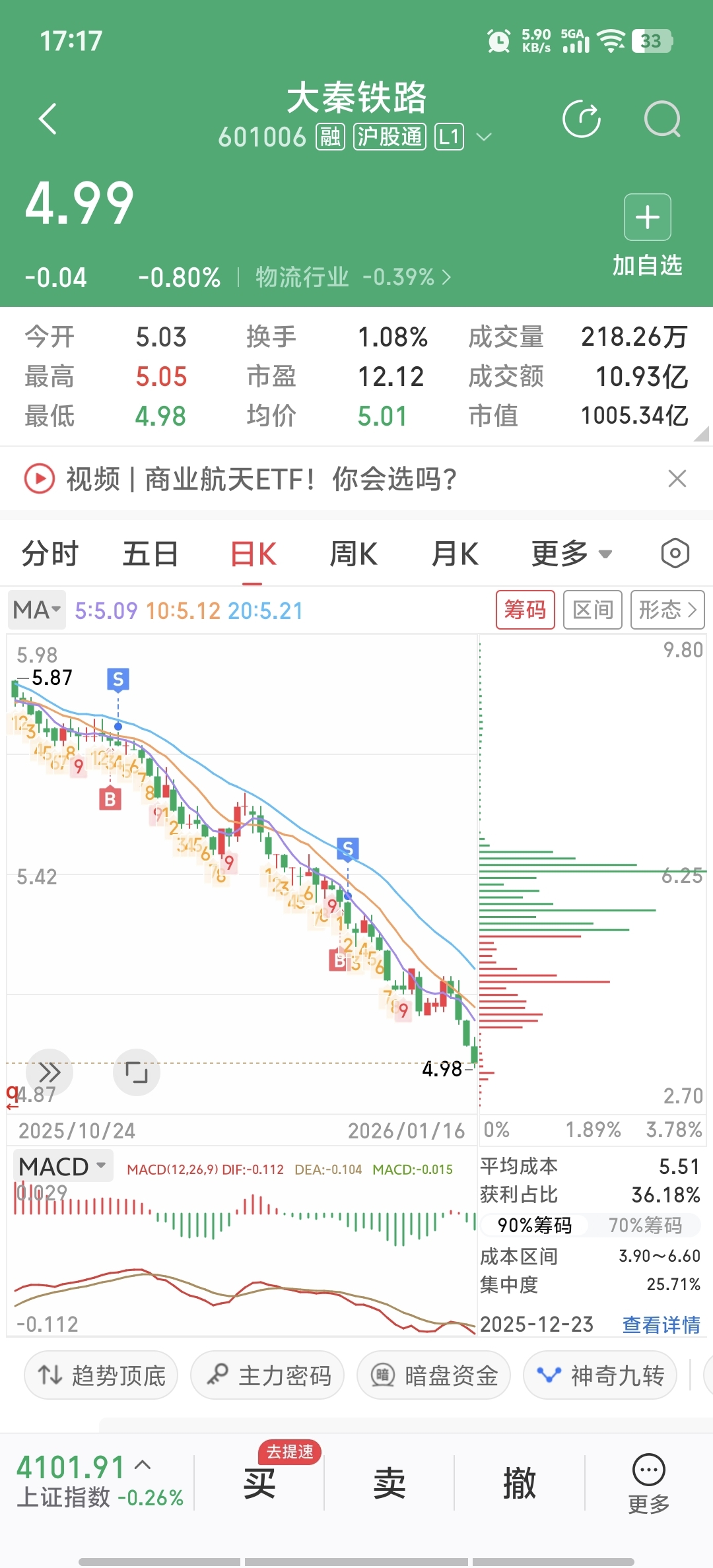 $大秦铁路(SH601006)$ 买2次看情况不对跑路了
