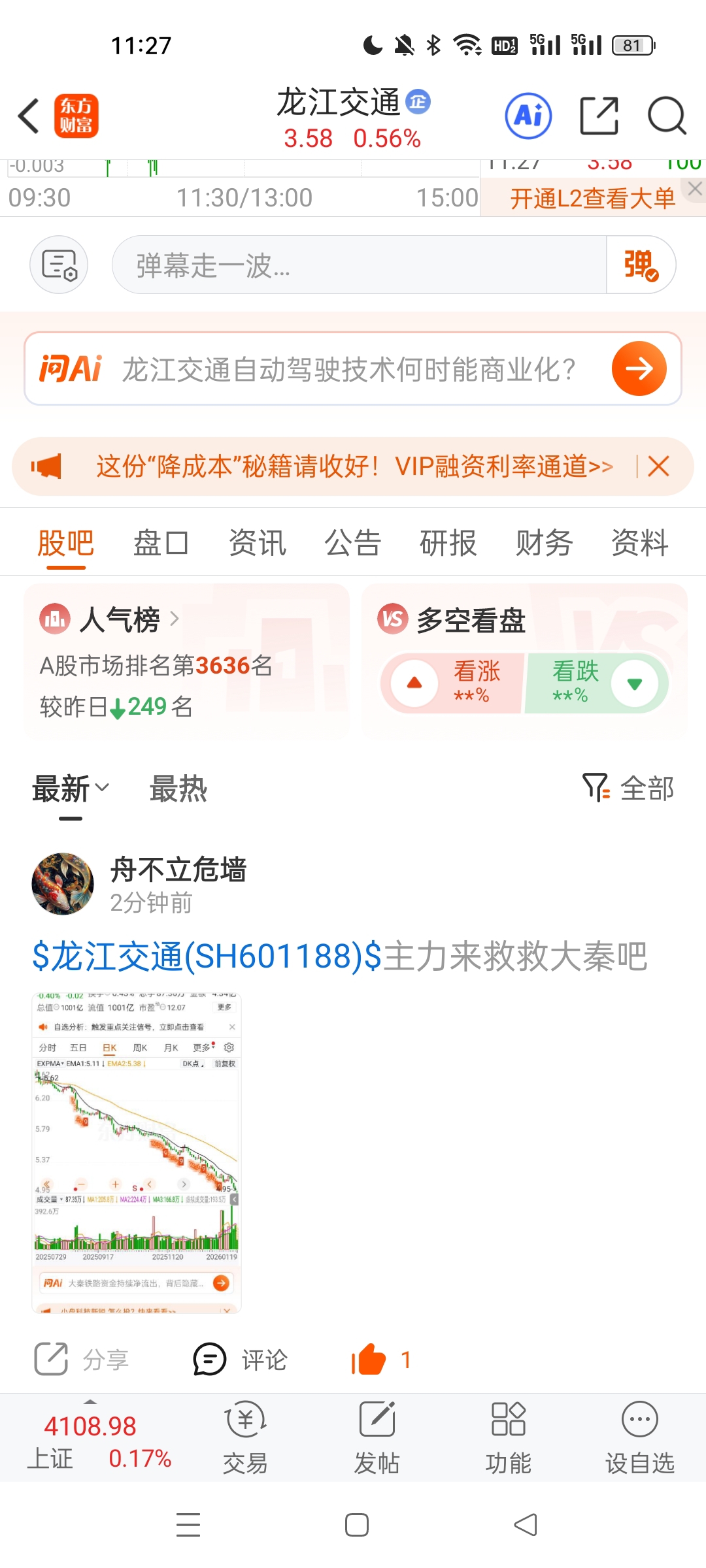 温馨提示: 1.根据《证券法》规定,禁止编造、传播虚假信息或者误导性信息,扰乱证券市场;2.用户在本社区发表的所有资料、言论等仅代表个人观点,与本网站立场无关,不对您构成任何投资建议。用户应基于自己的独立判断,自行决定证券投资并承担相应风险。《东方财富社区管理规定》