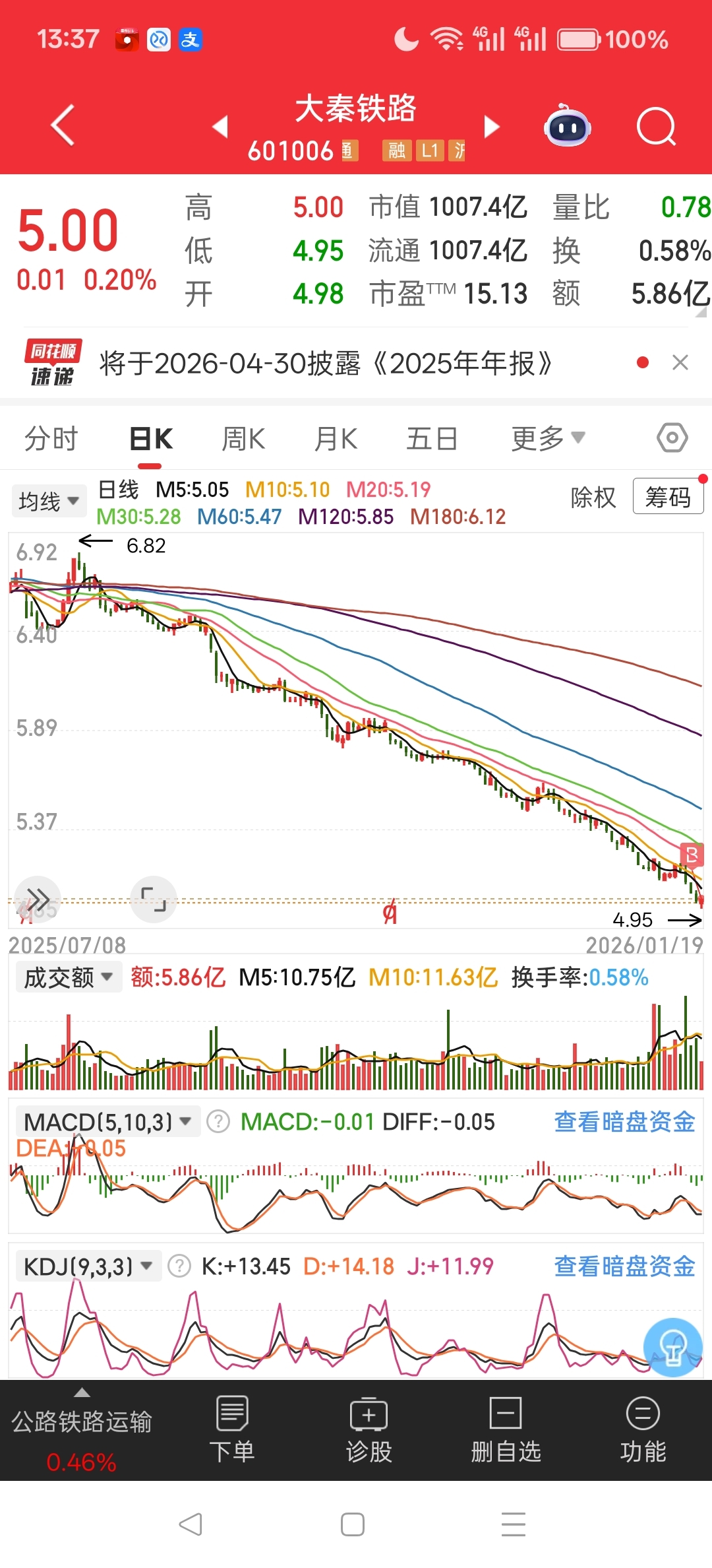 $大秦铁路(SH601006)$ 跌出了,第一网红股