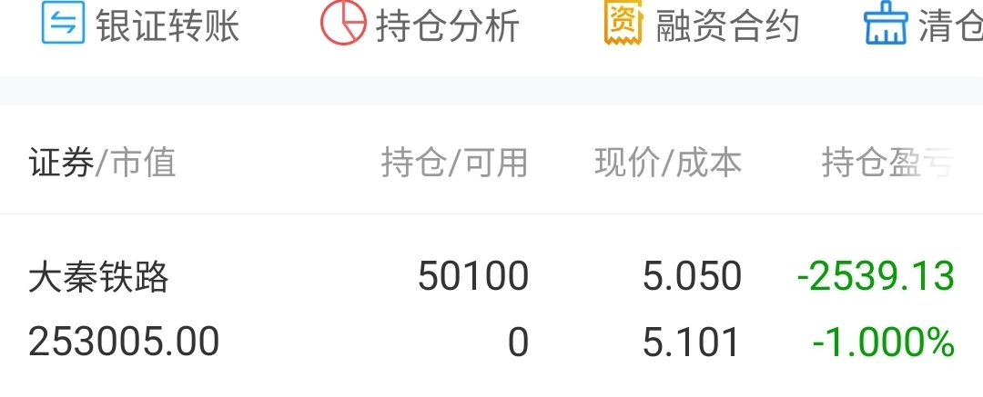 $大秦铁路(SH601006)$ 还亏1%,回本就跑咯