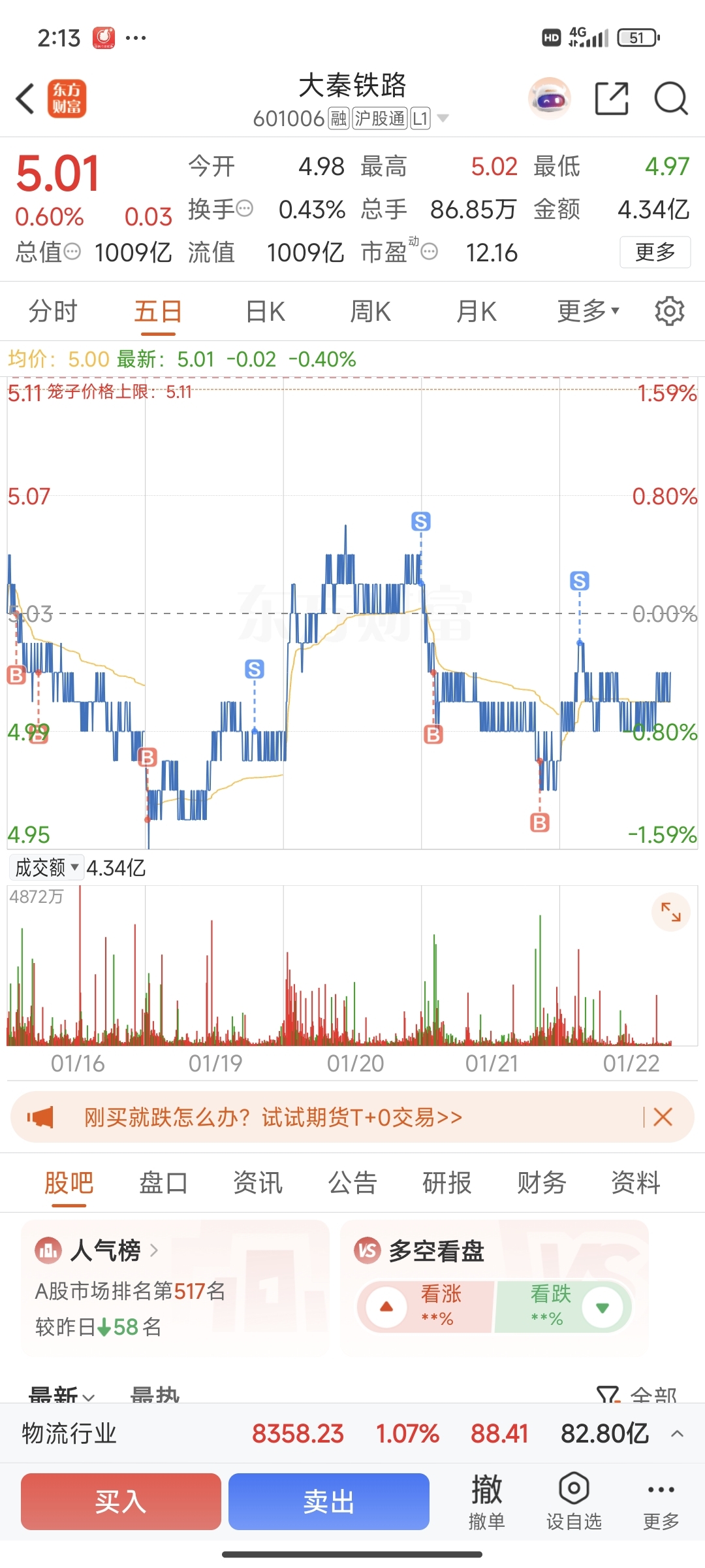 $大秦铁路(SH601006)$ 我卖了,只留了100股,你可以拉了