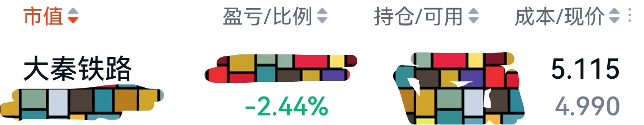 大秦铁路目前亏损2.25%,无操作