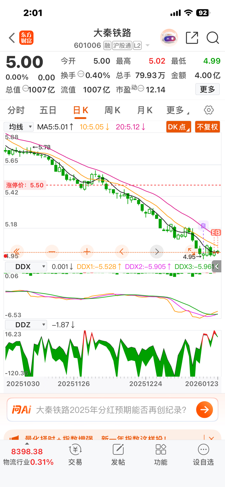 $大秦铁路(SH601006)$ 最后10W股,然后也没钱了,放10年!