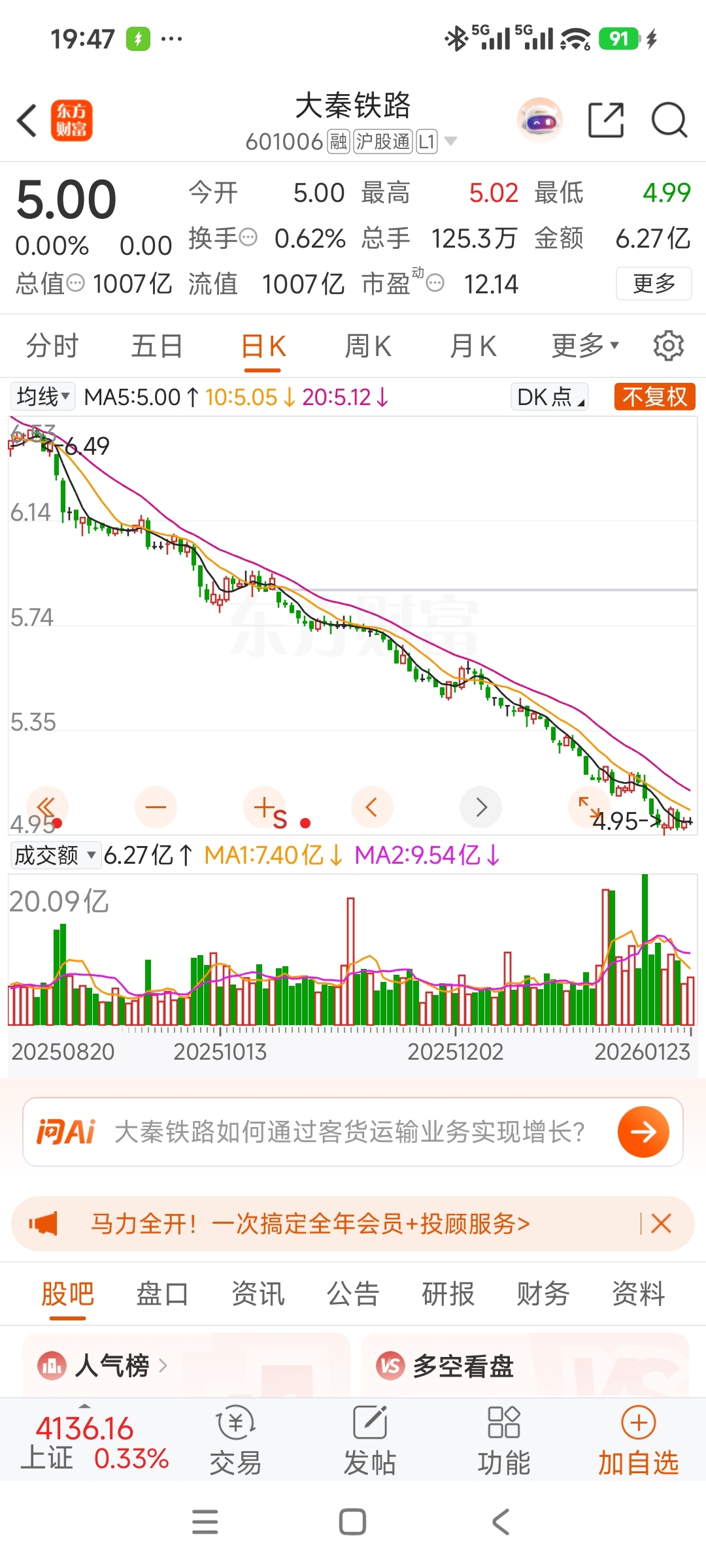 $大秦铁路(SH601006)$ 走势很丝滑啊
